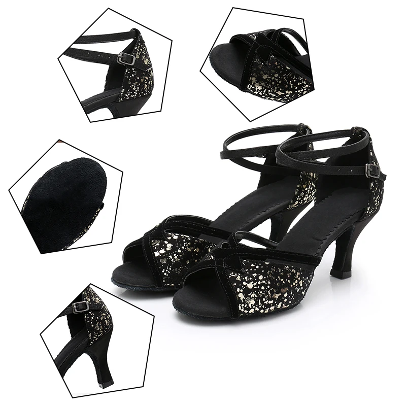 Туфли для латиноамериканских танцев, с закрытым носком и блестками