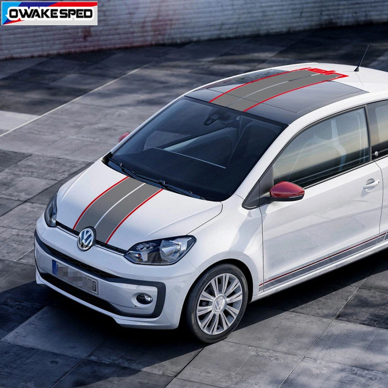 Наклейка на капот автомобиля, гоночные спортивные полоски, для автомобилей Volkswagen-UP E-UP, наклейки на крышу двигателя, виниловые наклейки, аксессуары для самостоятельной сборки