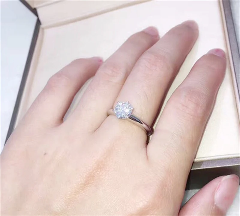 YANHUI имеет сертификат 100% оригинал 925 Твердые серебряные обручальные кольца Натуральный топаз 6 мм 1 карат циркониевые кольца с бриллиантами для женщин R003