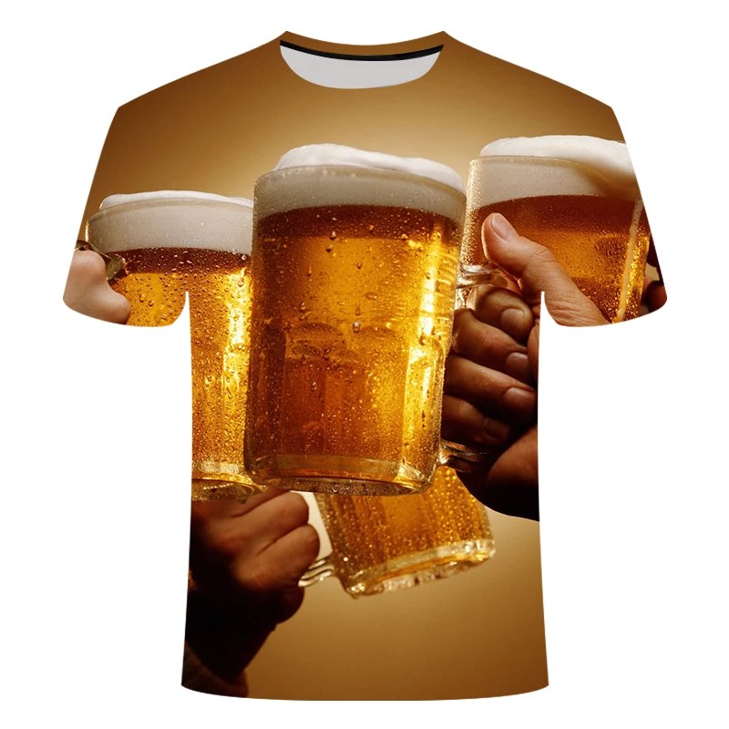 Футболка МужскаяЖенская, с круглым вырезом и коротким рукавом, в стиле хип-хоп, с 3D принтом, лето с принтом "пиво"