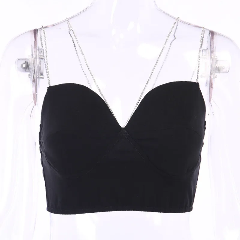 Женский укороченный топ на бретелях CNYISHE, укороченный топ с кристаллами и открытой спиной, майка для вечеринки, уличная одежда, женские топы