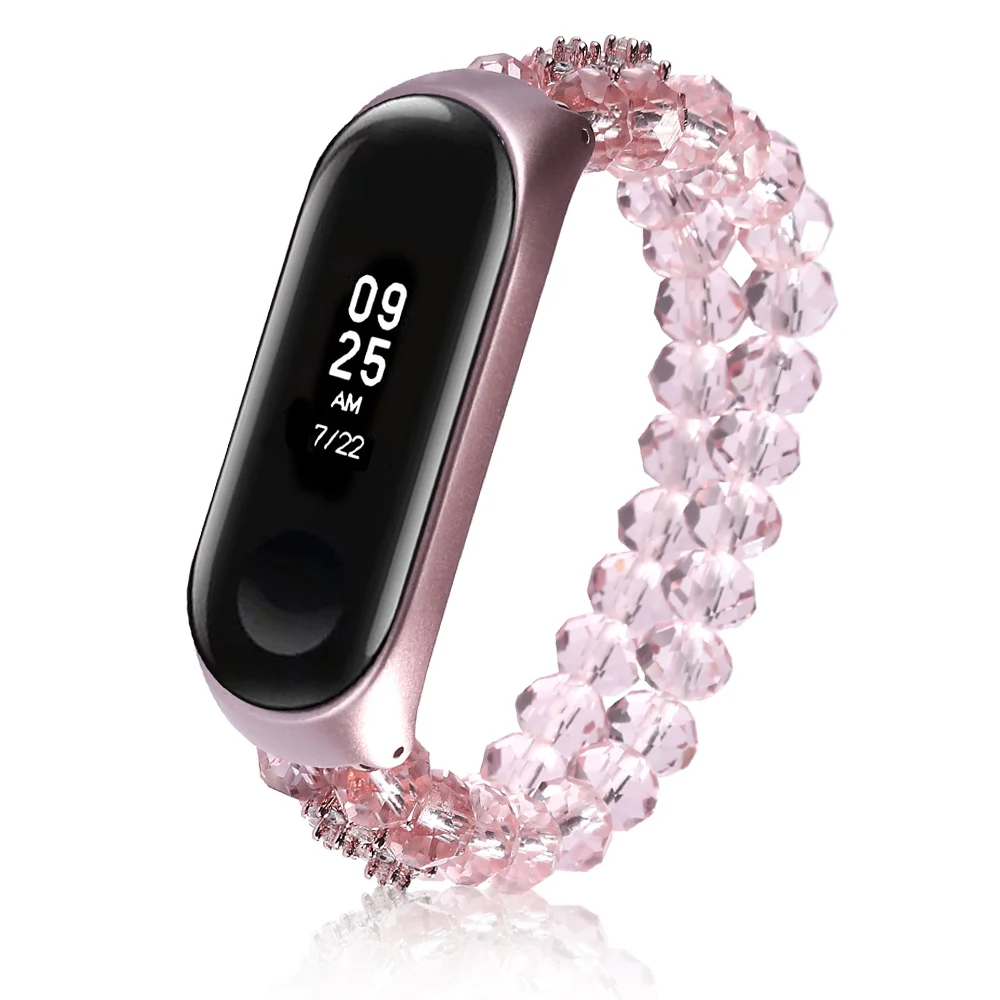 Белыйчерныйрозовый женский браслет с кристаллами для Xiaomi Mi Band 6 5 4 3, эластичный ремешок для часов MIband, ювелирный ремень