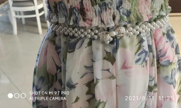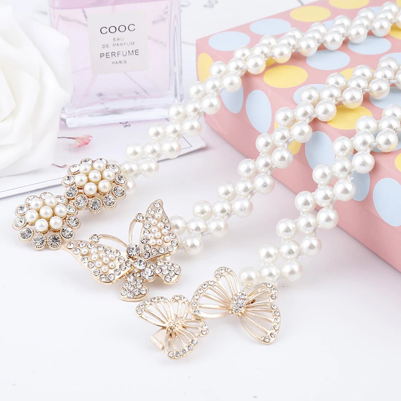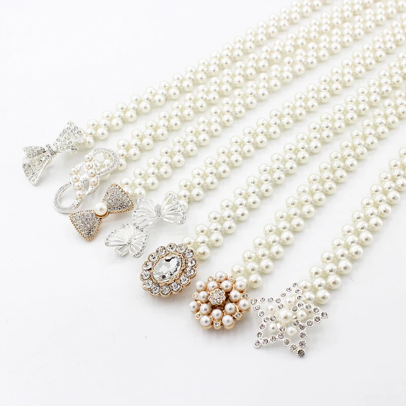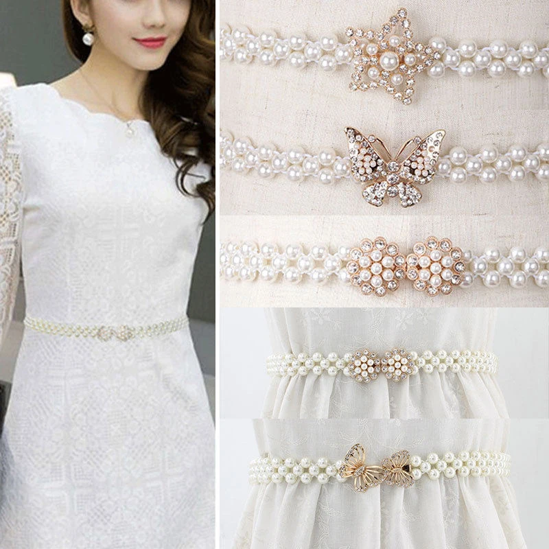 Элегантный эластичный пояс для девочек 2020, белый модный пояс с пряжкой, украшенный кристаллами и жемчугом, для платья и одежды