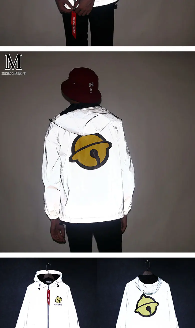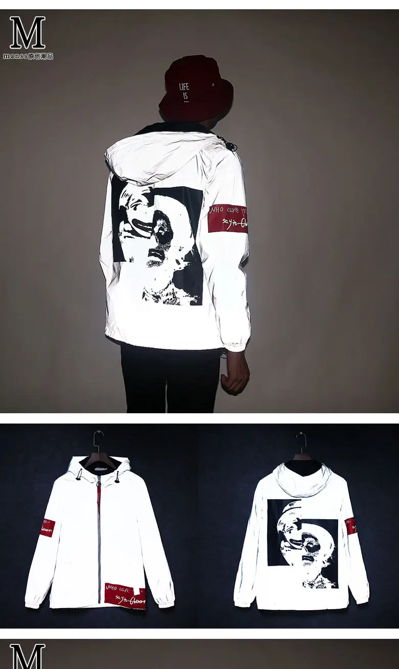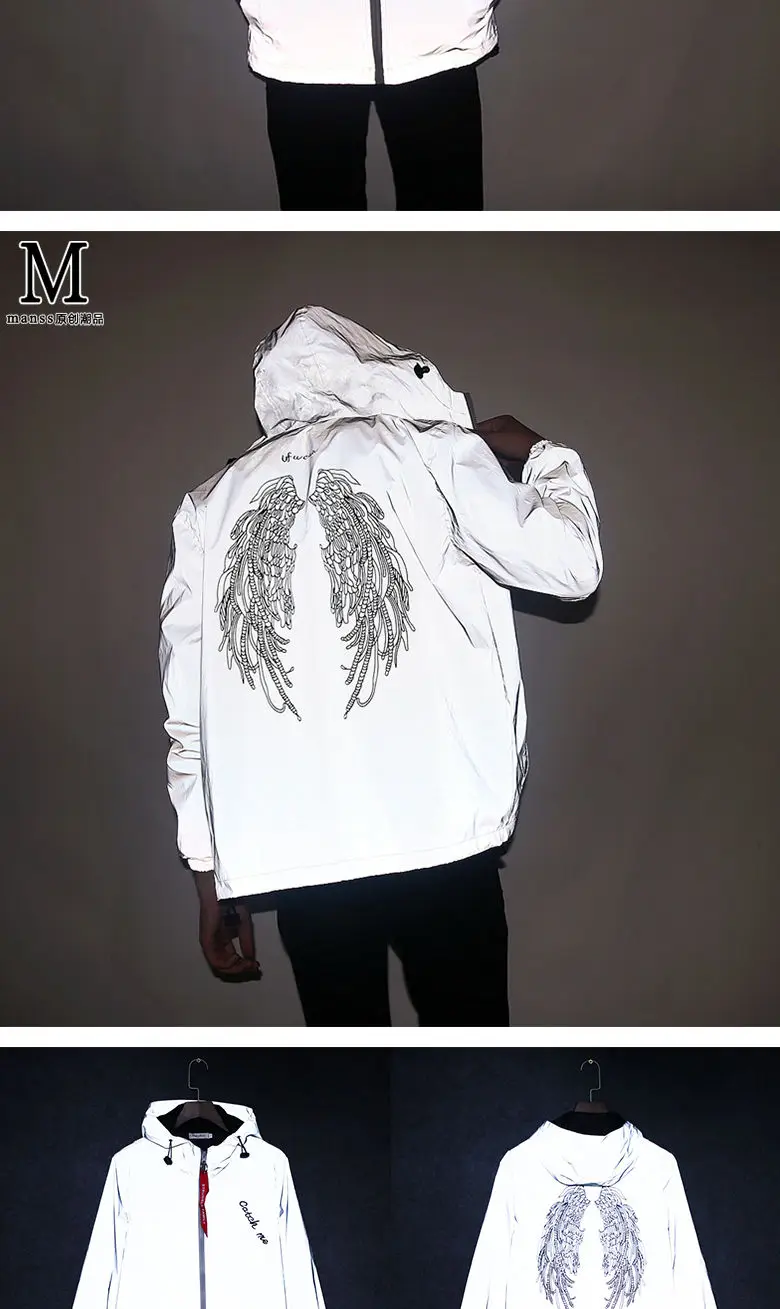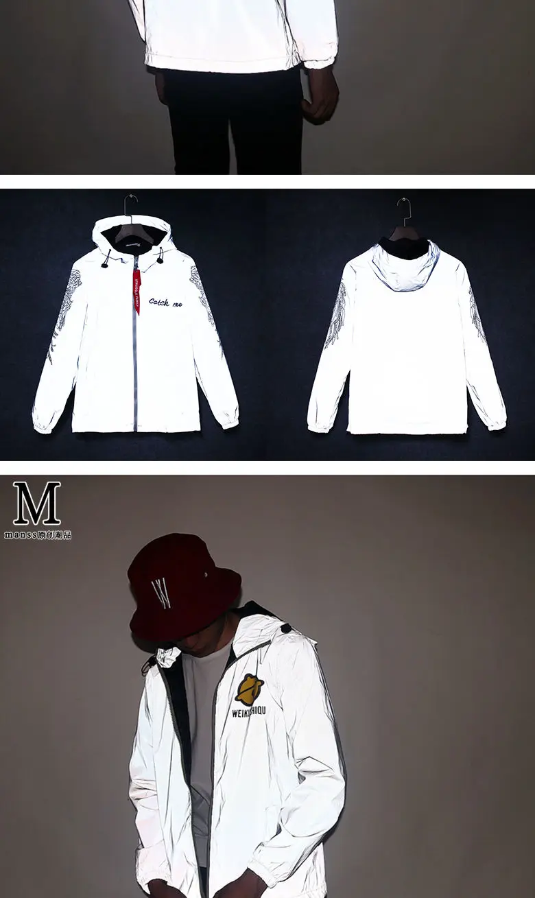 Новая полностью Светоотражающая куртка для мужчин и женщин, ветровка в стиле Харадзюку, уличная одежда в стиле хип-хоп с капюшоном, блестящие пальто на молнии, куртка