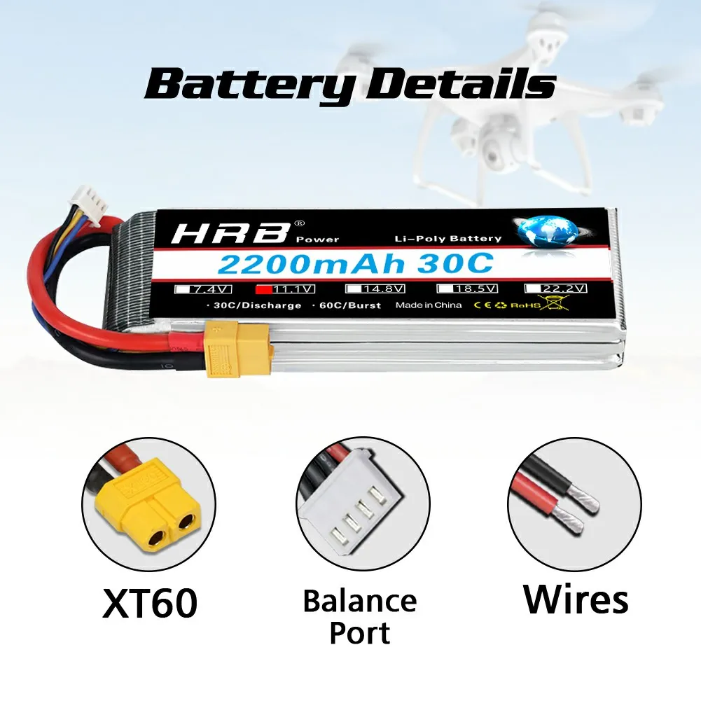 HRB 3S 11,1 V 2200mah Lipo battery 4S 6S 30C для RC airplane fpv drones rc car boat