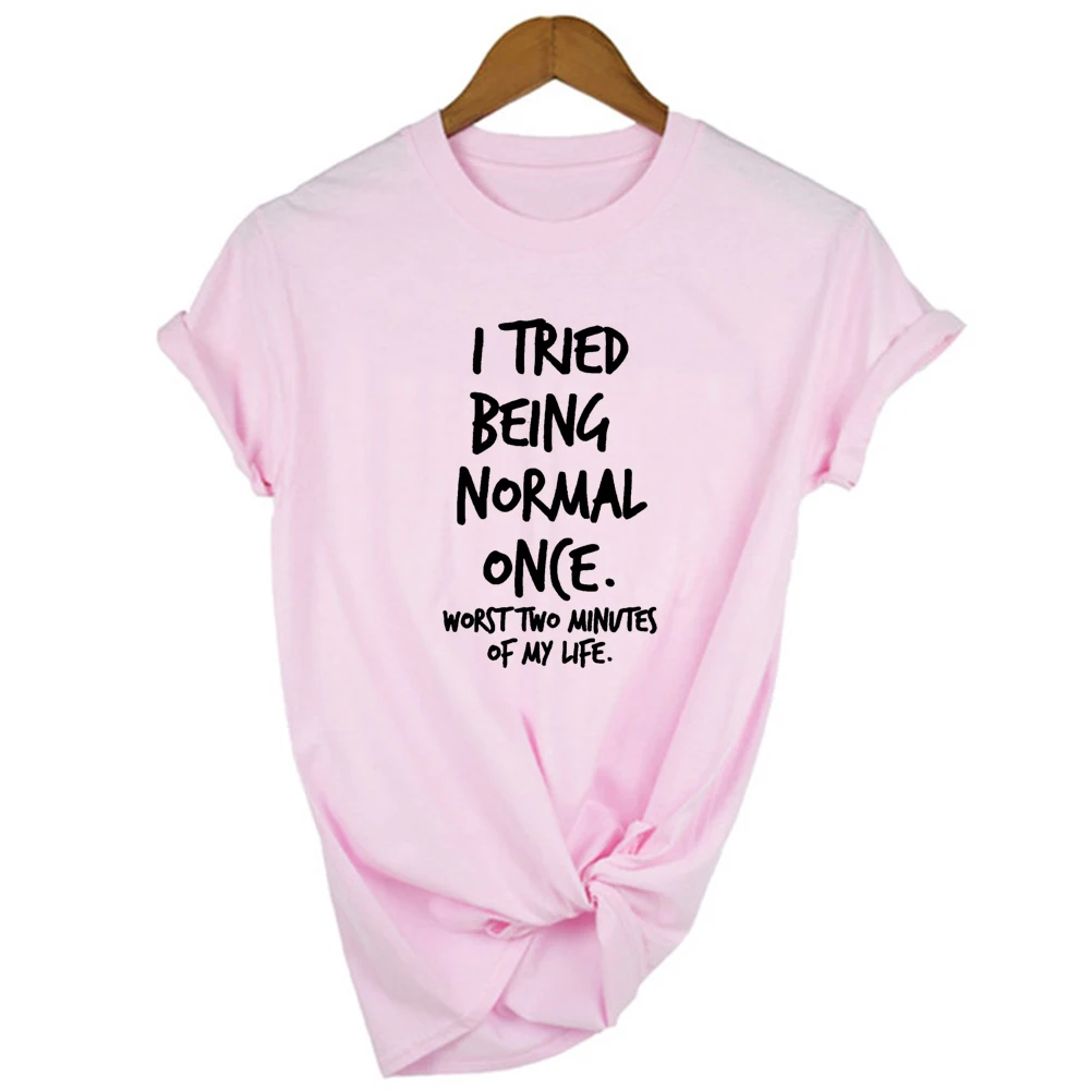 Я пробовал быть нормальным один раз худший две минуты моей жизни Летняя женская Футболка Harajuku Топ хипстерские футболки Tumblr забавная одежда