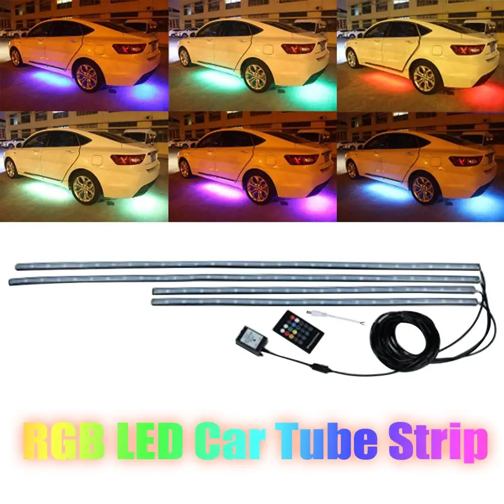 Светодиодная лента RGB под светодиодную ленту, 4 шт., 7 цветов, трубчатая система днища, Bluetooth, управление через приложение, неоновый светильник на шасси