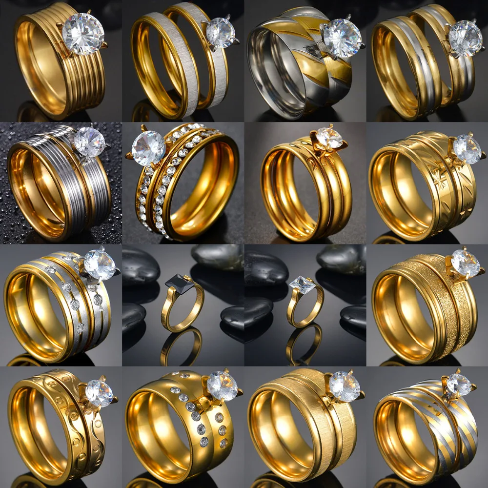 Простое кольцо из нержавеющей стали с созвездиями титана и кристаллом циркония, свадебное кольцо 8 мм, цвет Радуга, пара, золотоКоролева, кольцо настроения