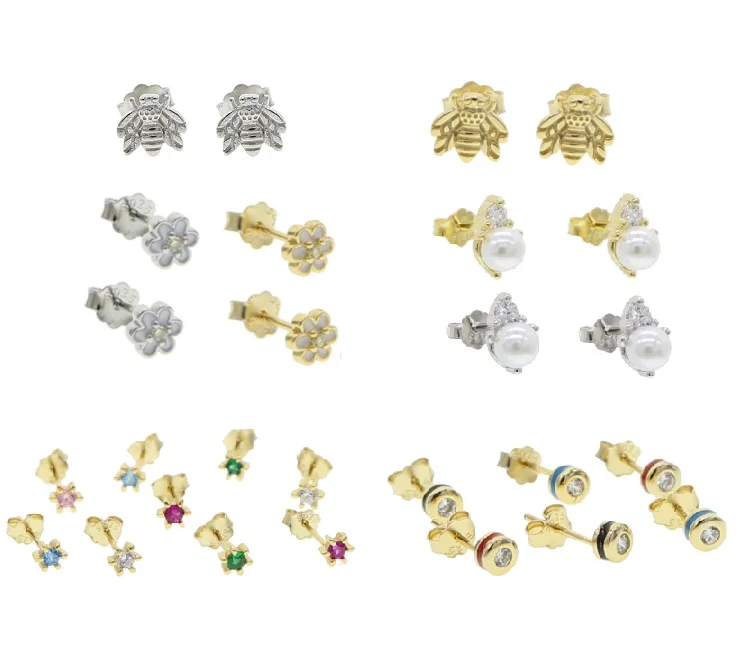Изящные серьги-гвоздики из стерлингового серебра 925 пробы в минималистическом стиле с цветными пчелами/цветами/звездами/бусинами/жемчужинами, очаровательные ювелирные изделия для женщин, свадебный подарок