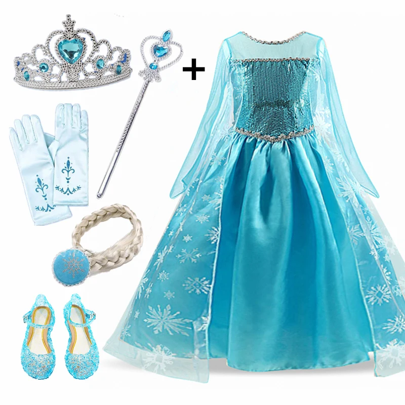 Платье в стиле принцесс для девочки, От 3 до 10 лет Карнавальный костюм для хеллоуина; Одежда для дня рождения, платье принцессы корона коса