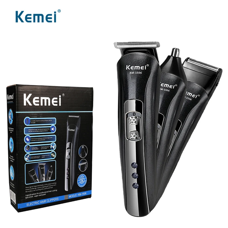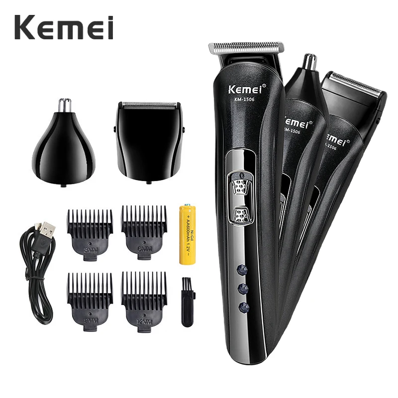 Kemei Электрический триммер для волос для мужчин 3 в 1, многофункциональная машинка для стрижки волос, аккумуляторные наборы для стрижки с 4 концевыми гребнями, USB зарядное устройство