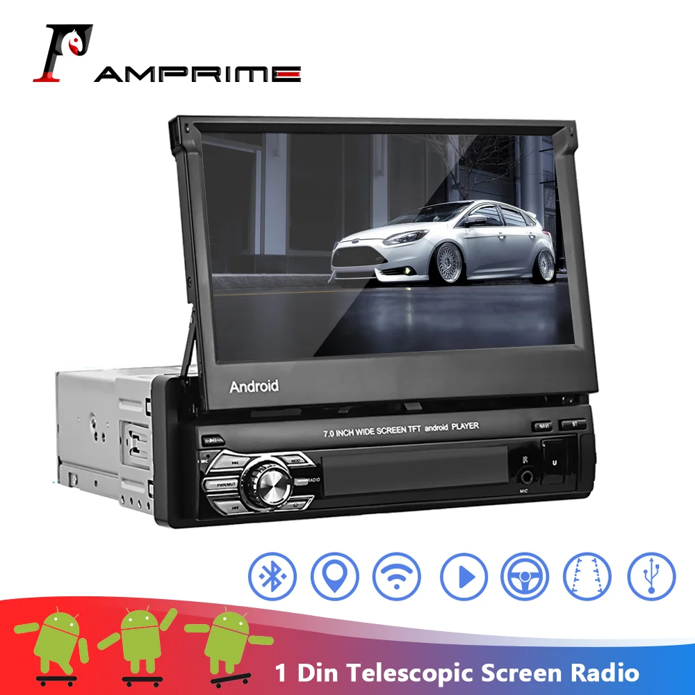 Автомагнитола AMPrime 1 Din на Android с сенсорным экраном 7 дюймов, автомобильный мультимедийный плеер с GPS-навигацией, Wi-Fi, автомобильный MP5, Bluetooth, USB, FM