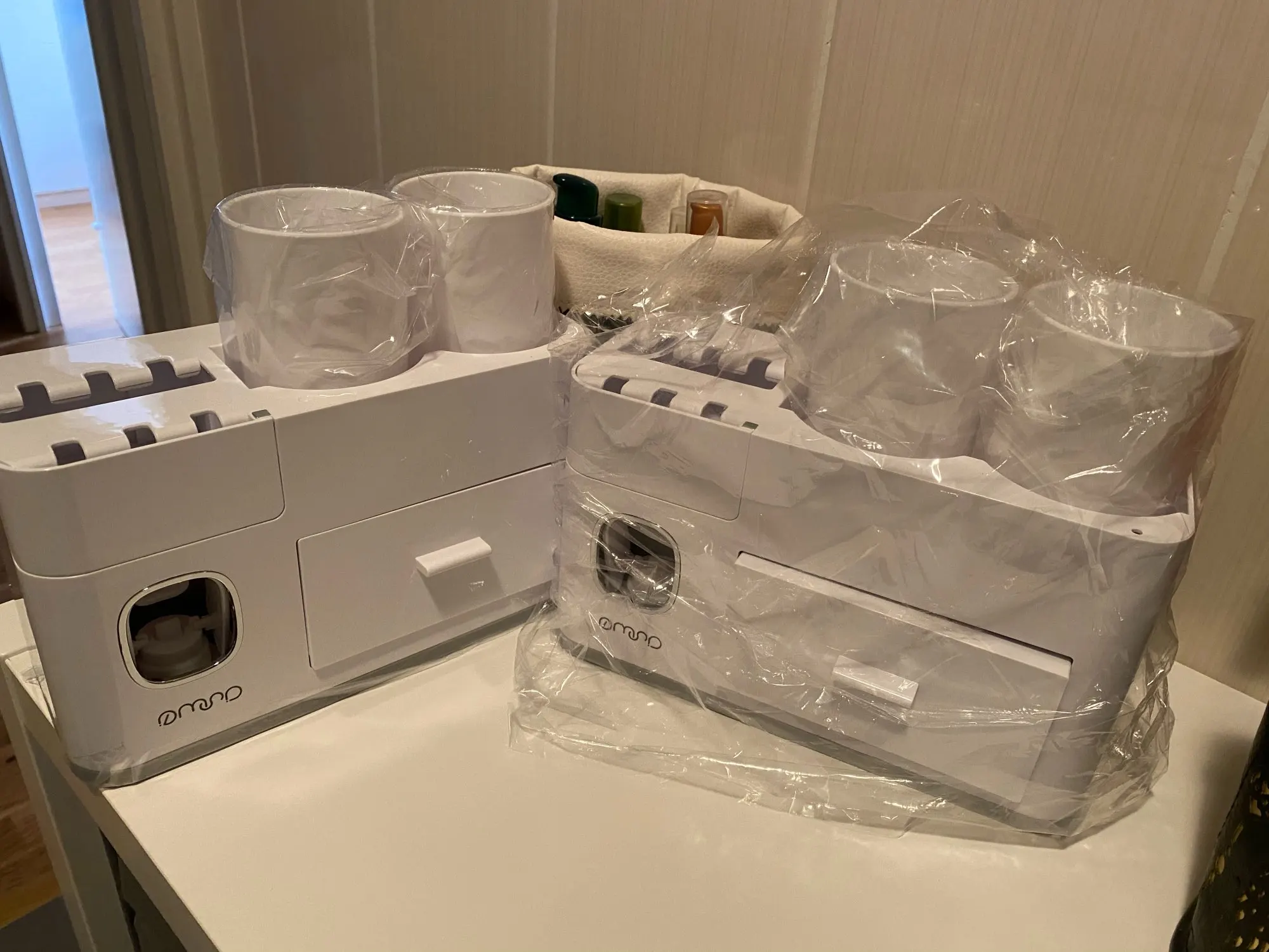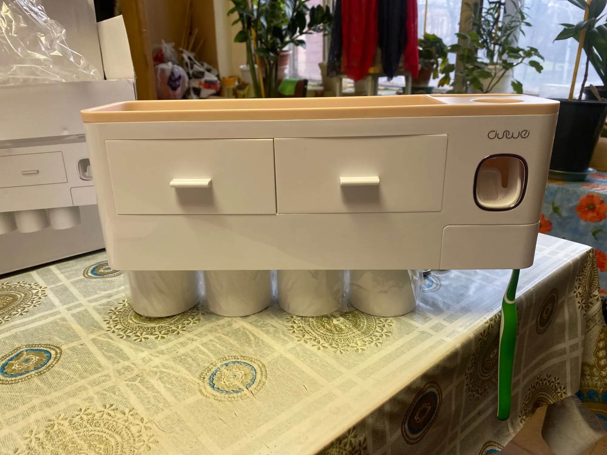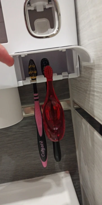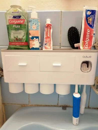 Очень хороший держатель, с автоматическим дозатором зубной пасты. Рекомендую продавца.