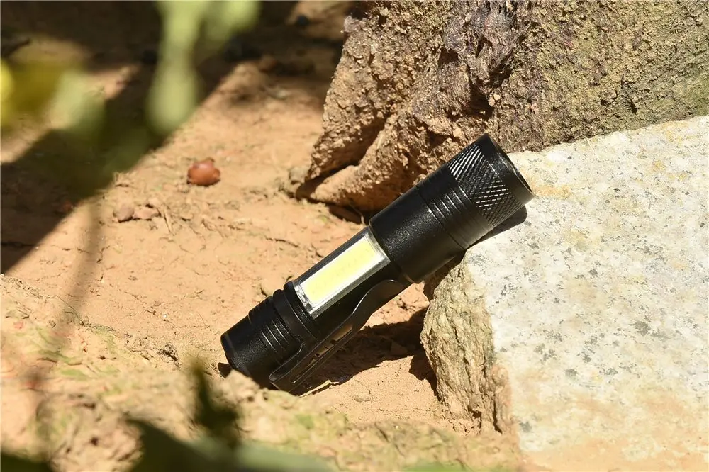 Светодиодный фонарик Q5 + COB, портативный супер яркий водонепроницаемый фонарик, настраиваемый фонафонарь с батареей АА 14500