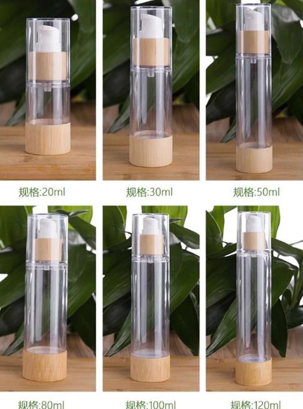 6 размеров Экологичные бамбуковые пустые безвоздушные бутылки для вакуумного насоса для макияжа Крем Сыворотка лосьон уход за кожей Аксессуары для путешествий
