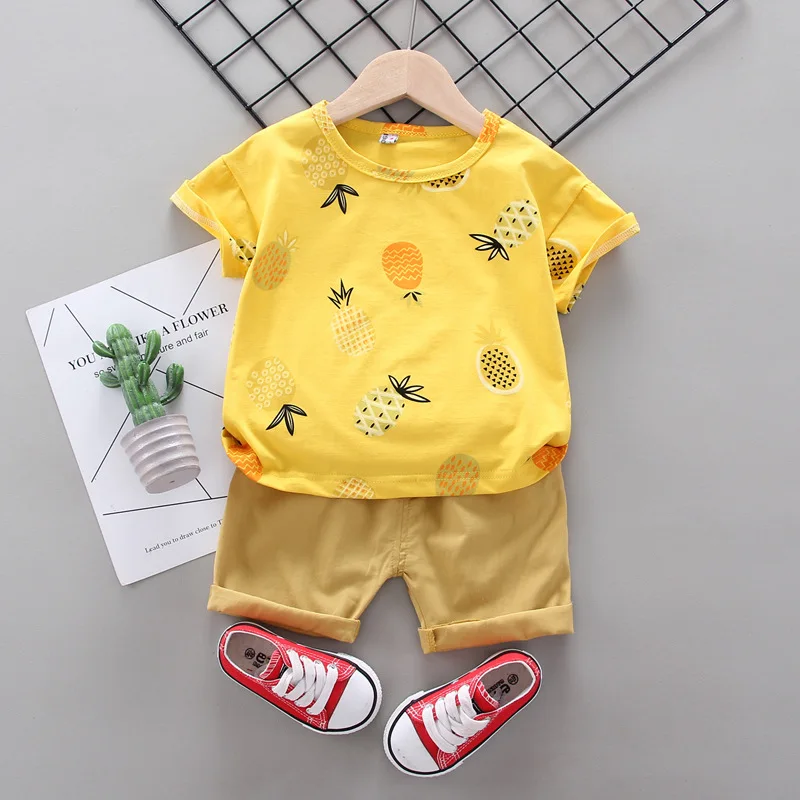 2021 новый летний Повседневный короткий костюм, комплект одежды для маленьких мальчиков, футболка с принтом + штаны, комплект из 2 предметов для детей 1, 3, 5 лет