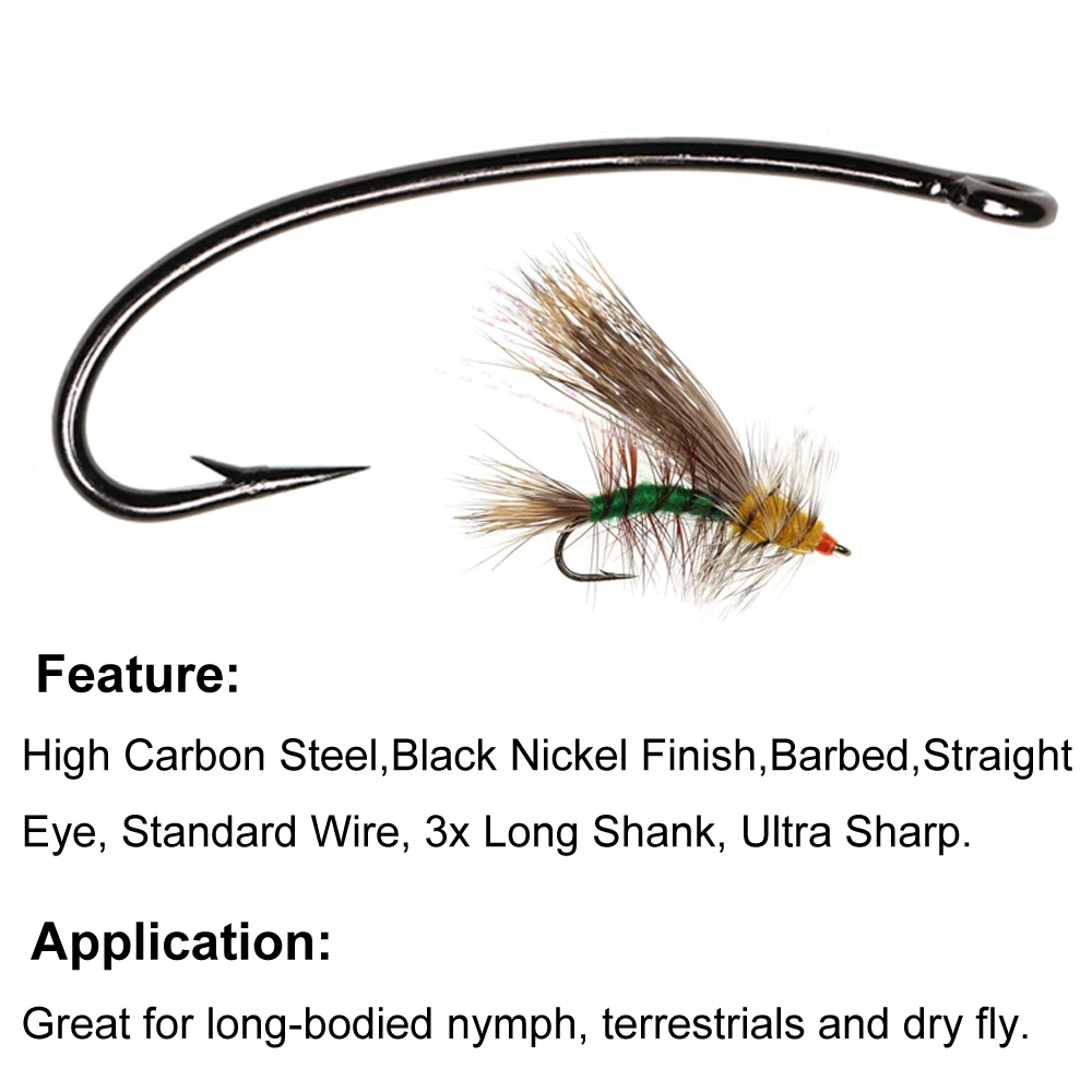 Bimoo 1000 шт Terrestrials Nymph Dry Fly связывающий крючок прямой глаз 3X длинный хвостовик стандартный провод черный никель рыболовные крючки 9 размеров