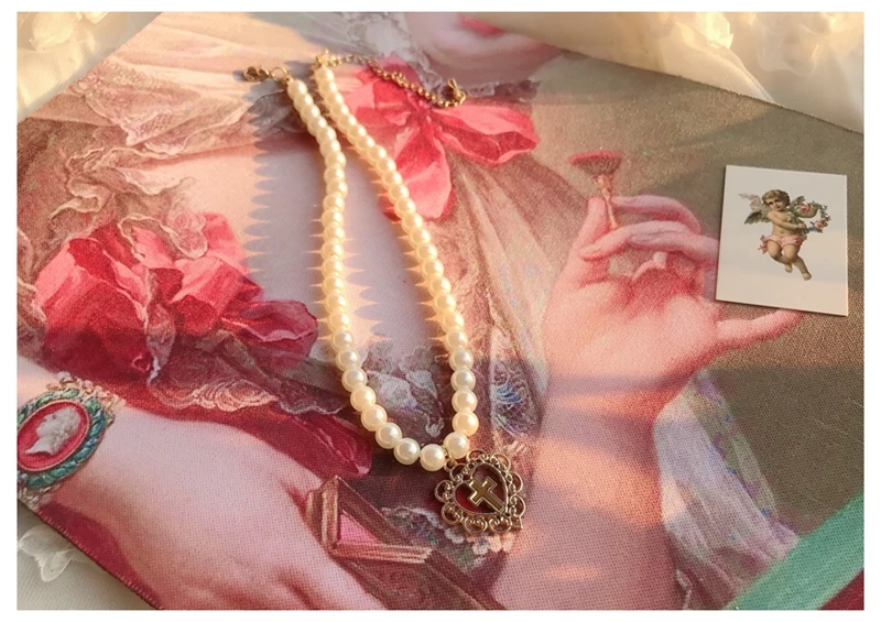 Колье с жемчужным сердцем и крестом, винтажное ожерелье в стиле 90-х, эстетика в стиле Харадзюку, Tumblr, эстетика, вапорайзер, художественное ожерелье, egirl, Прямая поставка