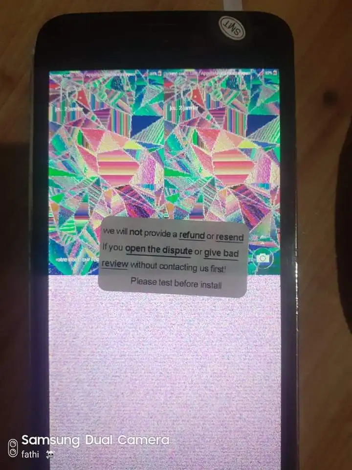 Не покупайте у этого продавца, он отправил мне нерабочий ЖК-дисплей и не хочет вернуть мне деньги, пожалуйста, не покупайте у этого продавца, он лжёт, что отправит мне новый экран и отправил мне поддельный номер отслеживания, Пожалуйста, не покупайте у этого продавца, он заставляет меня оставить положительный отзыв, Я загрузил 3 видео и 5 изображений, чтобы подтвердить, что экран неисправен, я подождите 2 недели, пока aliexpress вернет мне деньги, потому что продавец каждый раз находил что-то сказать лгать. Повторю, не покупайте у этого продавца