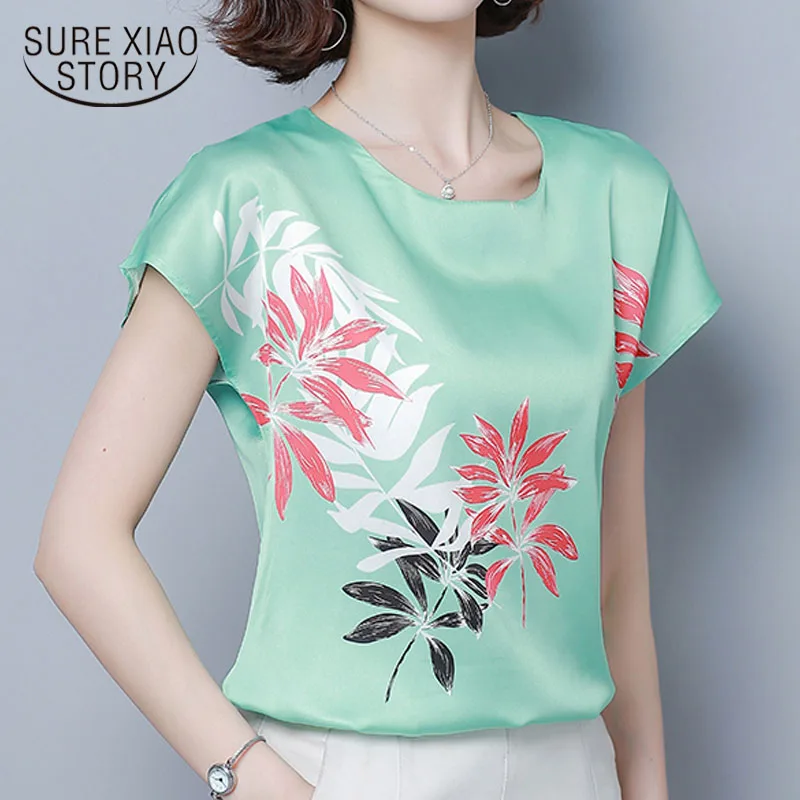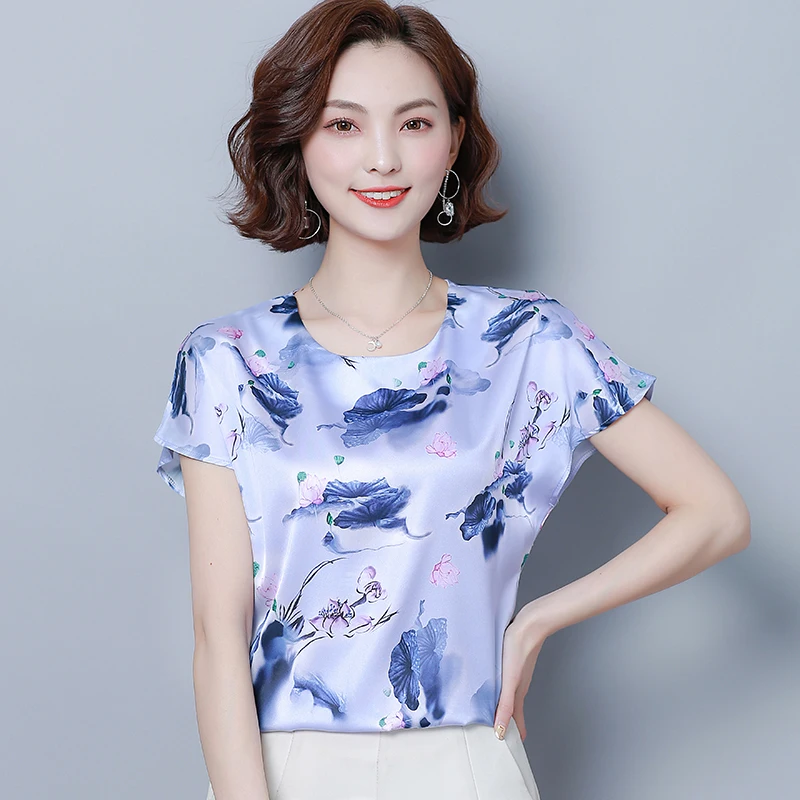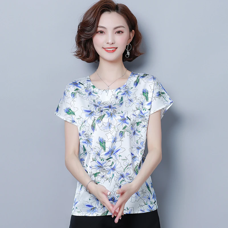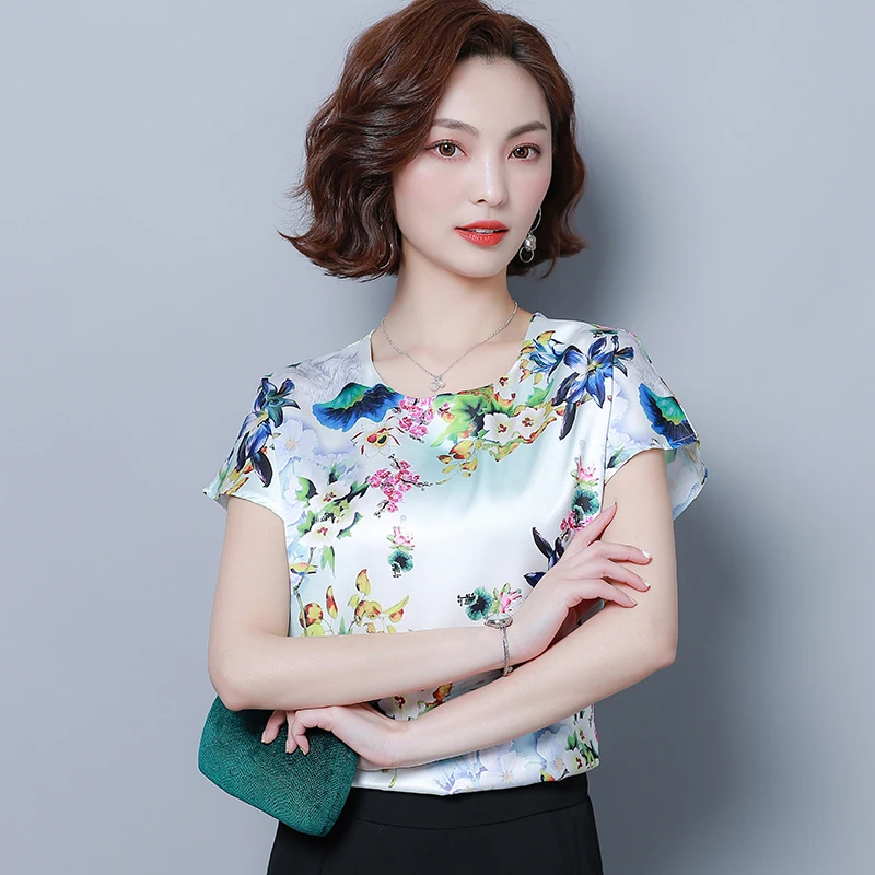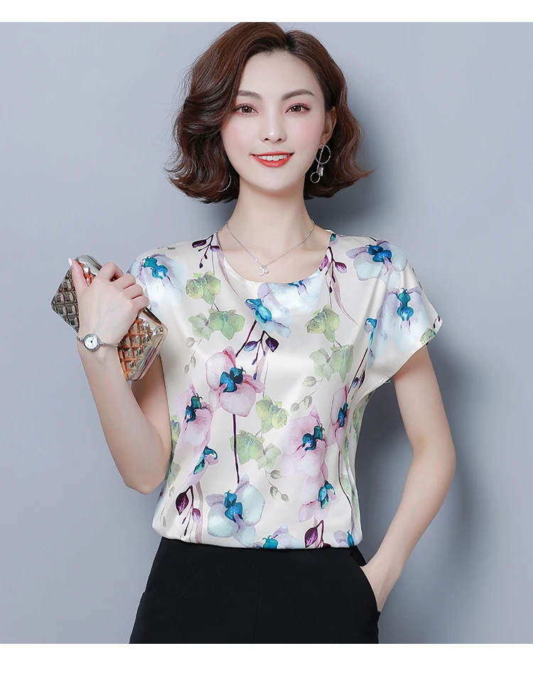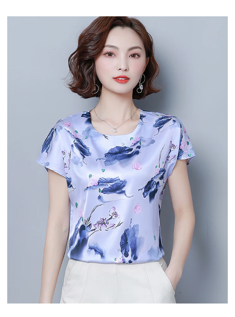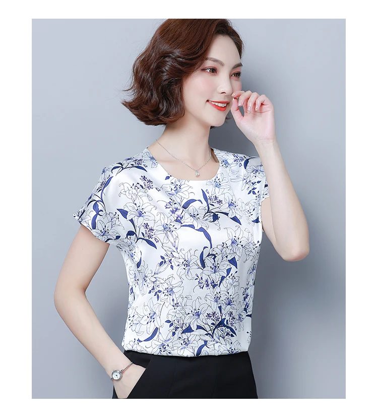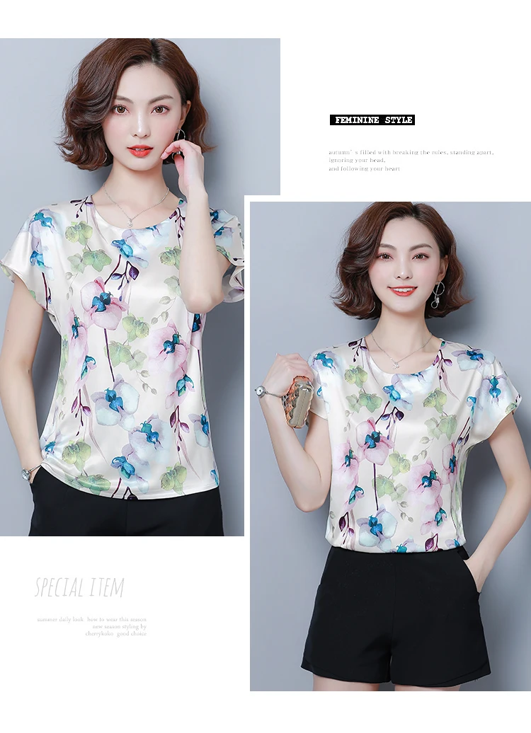 Блузка женская с коротким рукавом и круглым вырезом, 2022 50