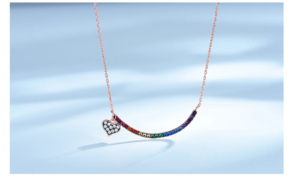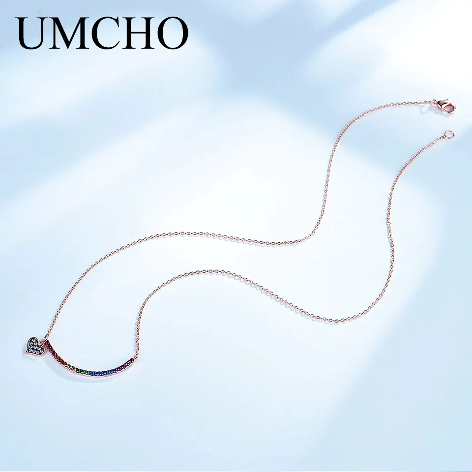 UMCHO, разноцветное Радужное сердце, цепочка из стерлингового серебра 925 пробы, ожерелье для девочки, романтический подарок для помолвки, хорошее ювелирное изделие