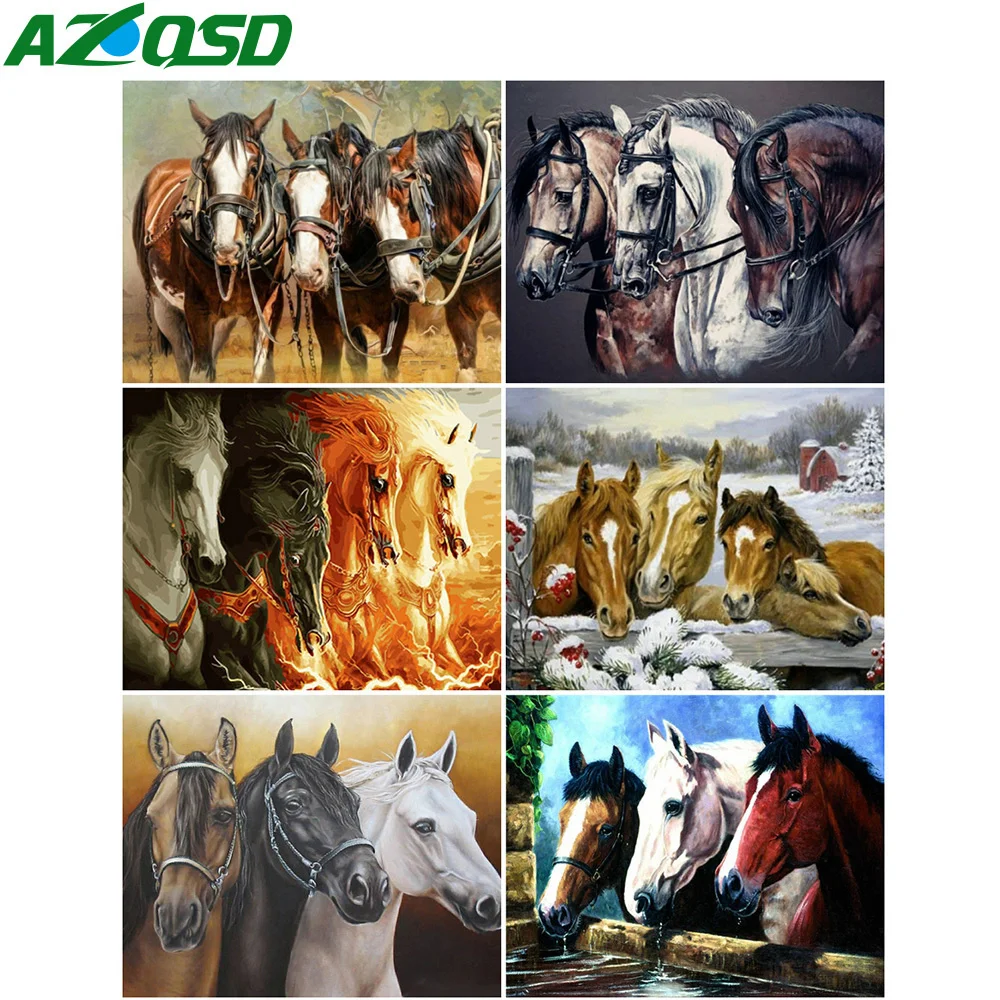 Масляная краска AZQSD для раскрашивания по номерам лошадь, сделай сам, акриловая краска, украшение для дома, Раскрашивание по номерам, животное, ручная роспись, подарок