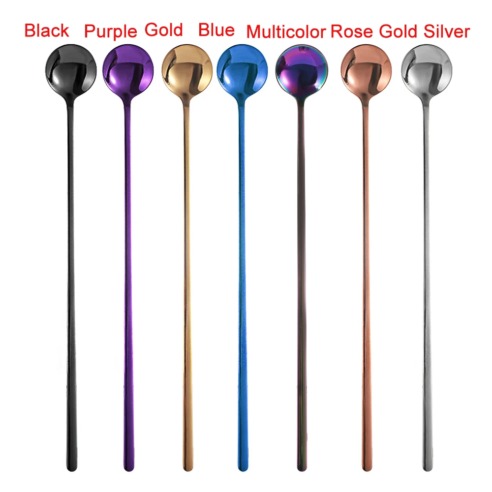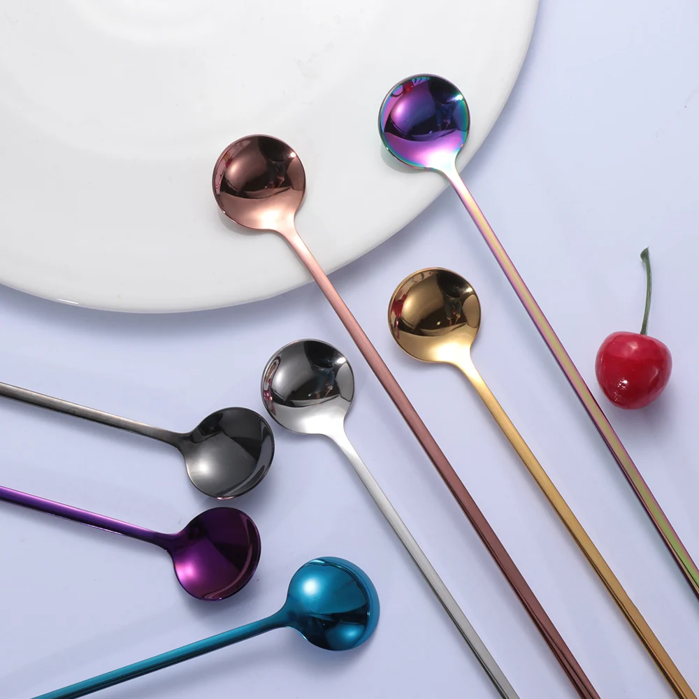1 шт. разноцветная Радужная ложка из нержавеющей стали для перемешивания кофейное Мороженое ложка c длинной ручкой посуда полированная кухонные принадлежности