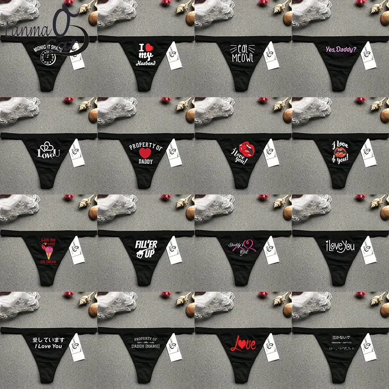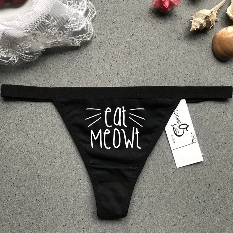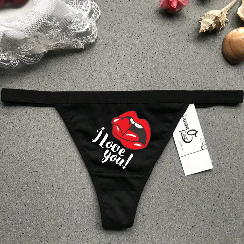 Соблазнительное черное нижнее белье Thogns для женщин, хлопковые G-стринги с горячим принтом, черные трусики, женское соблазнительное черное нижнее белье, трусики