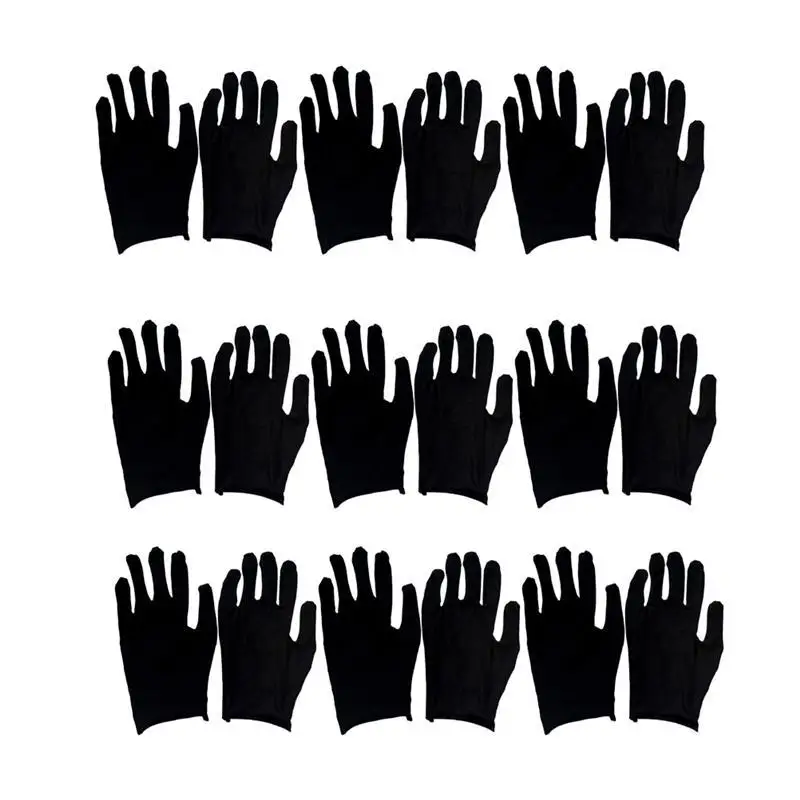 Перчатки рабочие из хлопка, 12 пар, удобные рабочие перчатки для защиты рук, черные, для уборки дома