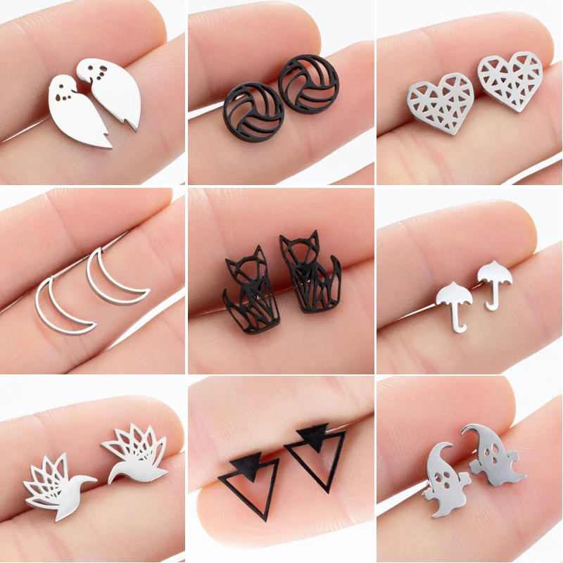 Женские Геометрические серьги SMJEL, из нержавеющей стали, в виде сердца, птицы, призрака, зонтика, кошки, волейбола, серьги-гвоздики