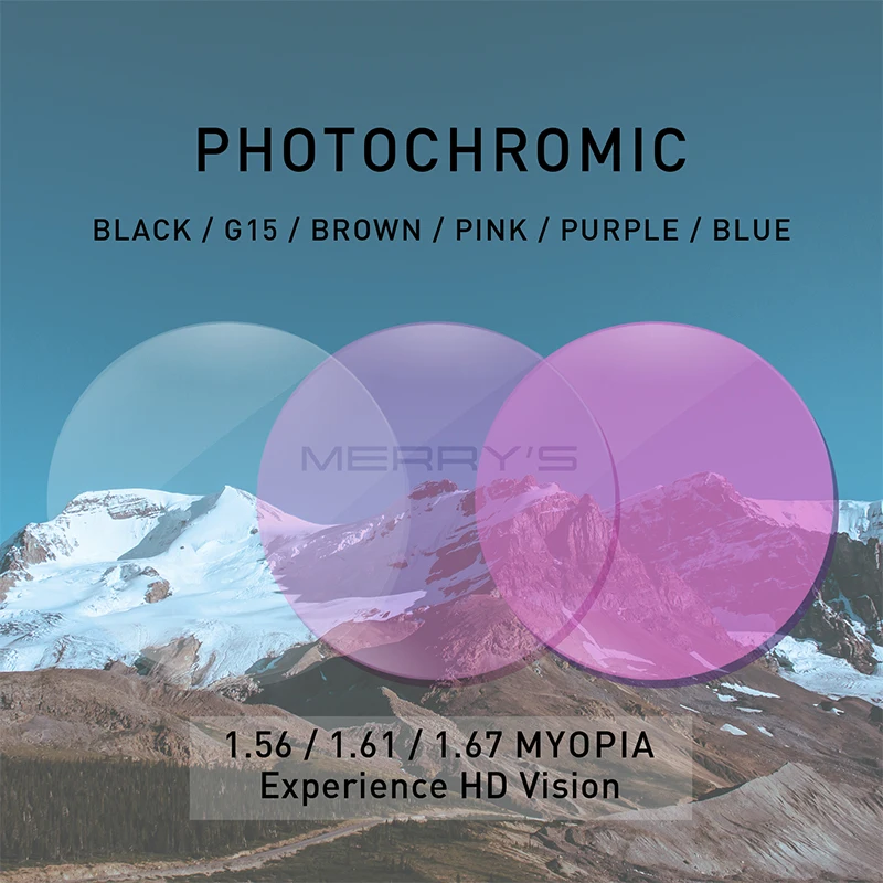 MERRYS фотохромные серые зеленые коричневые розовые фиолетовые синие серии 1,56 1,61 1,67 очки по рецепту линзы для близорукости дальнозоркости
