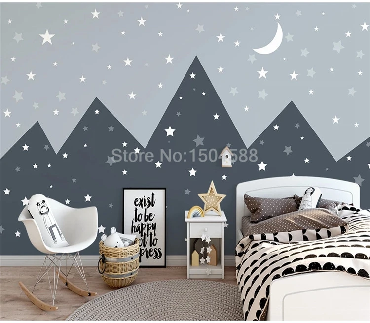 Настенные обои для детей, расписанные вручную, простые, в виде горного пика, звездного неба, 3D