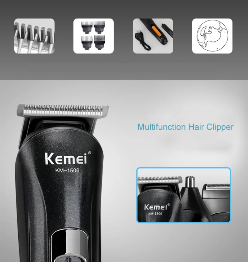 Машинка для стрижки волос Kemei, электрическая перезаряжаемая машинка для стрижки волос 4 в 1 Pro Li T-Outliner, триммер для волос в носу и ушах для мужчин, 2019