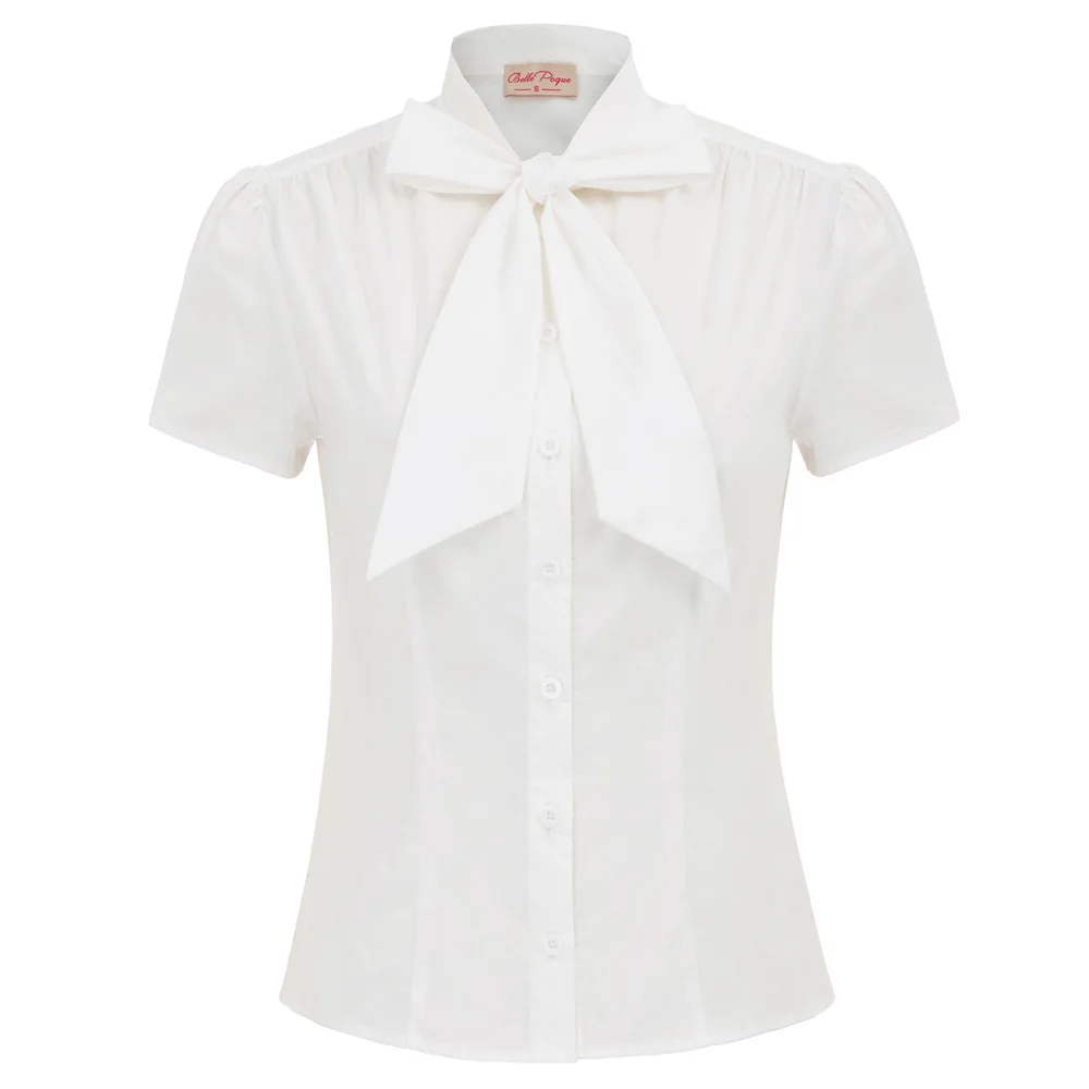 Женские топы и блузки Belle Poque, шифоновая однотонная блузка с бантом и отложным воротником, офисная одежда для женщин 2020