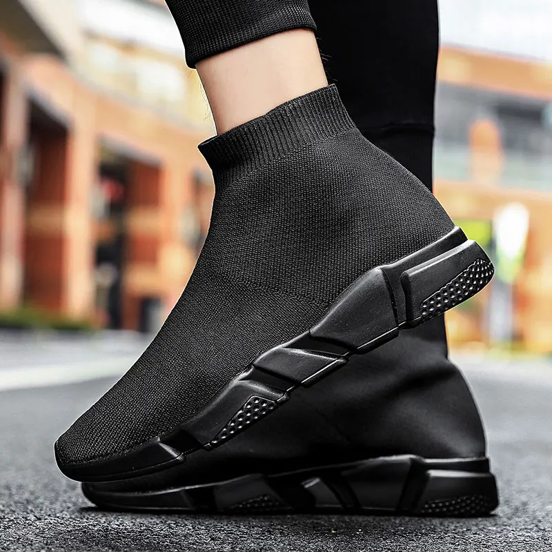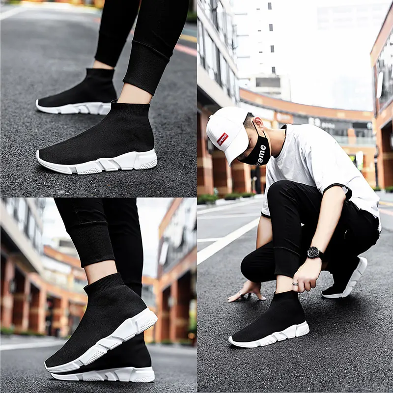 Кроссовки-носки MWY для мужчин и женщин, высокие, Вулканизированная подошва, Повседневная прогулочная обувь, размера плюс, черные