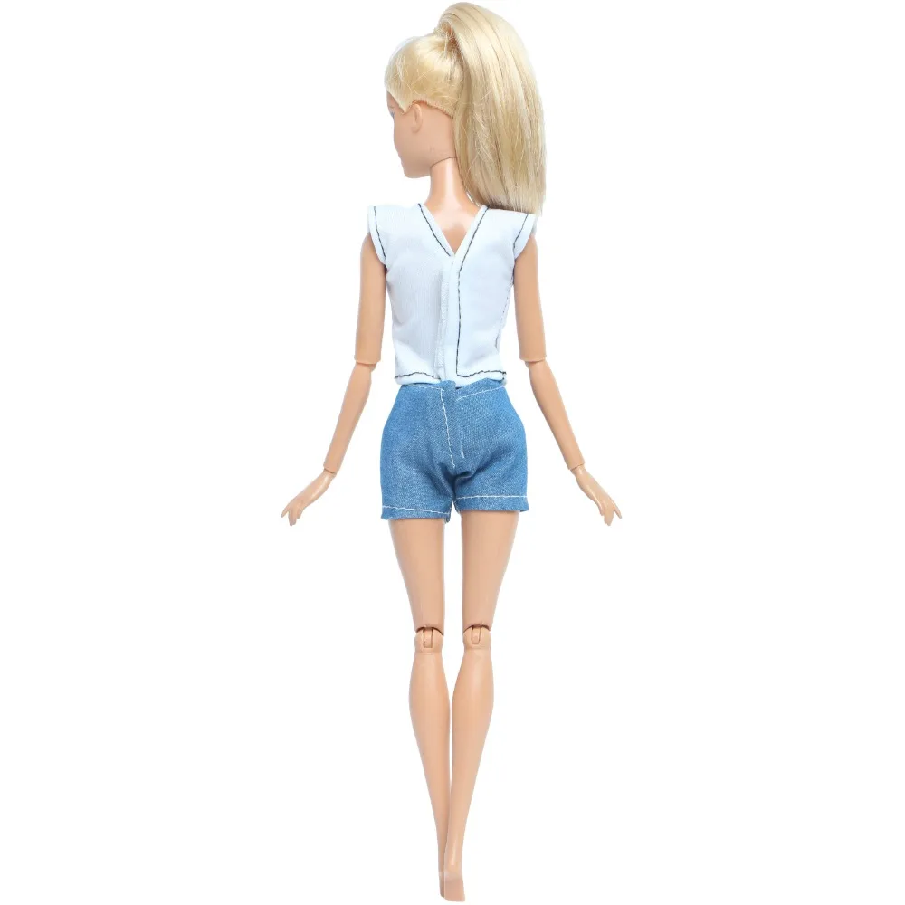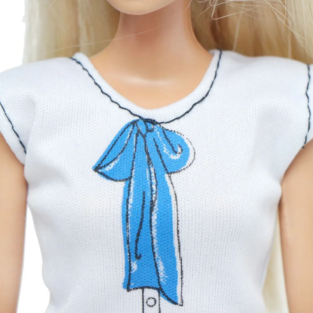 1 комплект, повседневная одежда ручной работы, повседневная одежда, синяя рубашка с бантом, топы короткие штаны, аксессуары для куклы Барби, детская игрушка