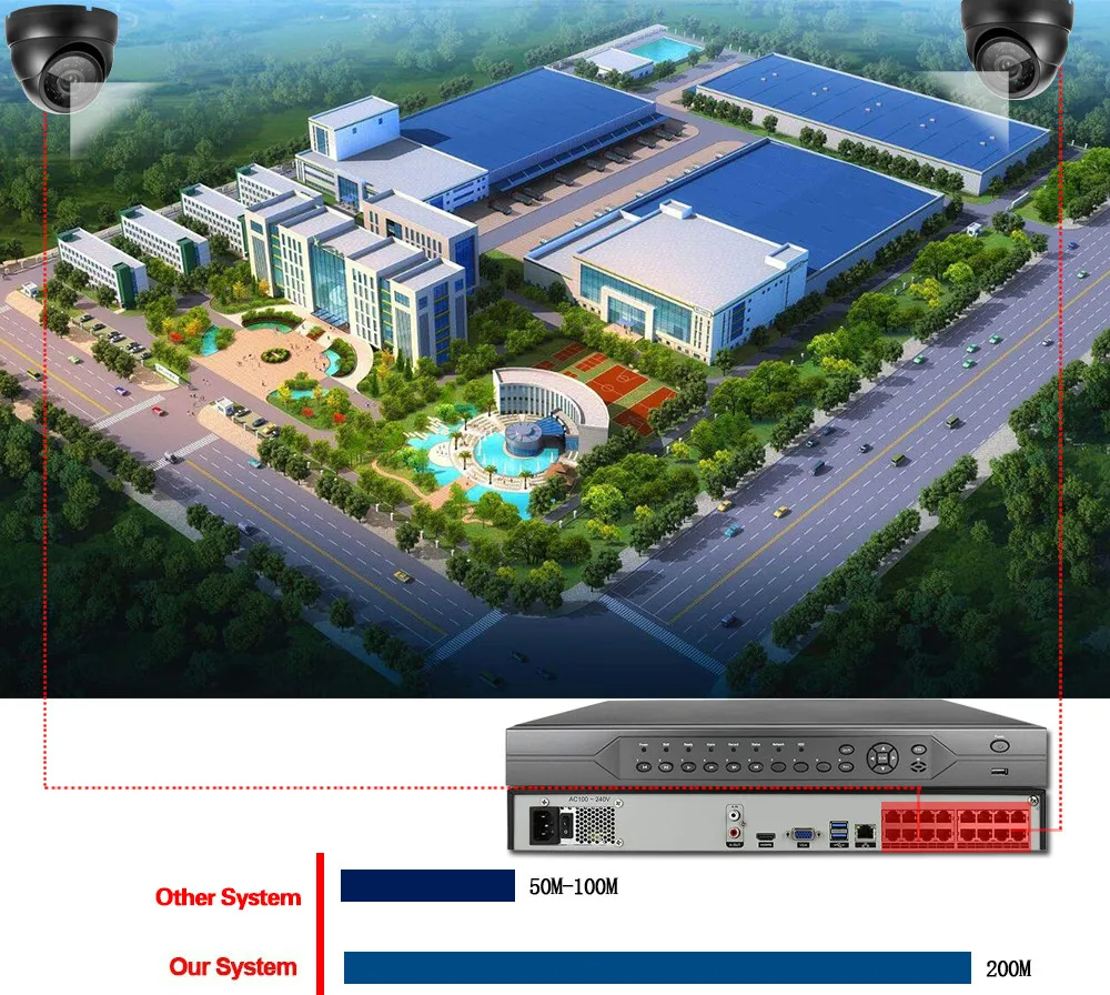 Максимальная поддержка системы POE150 м-200 мРасстояние передачи кабелей POE, что значительно увеличивает удобство домашней установки.
