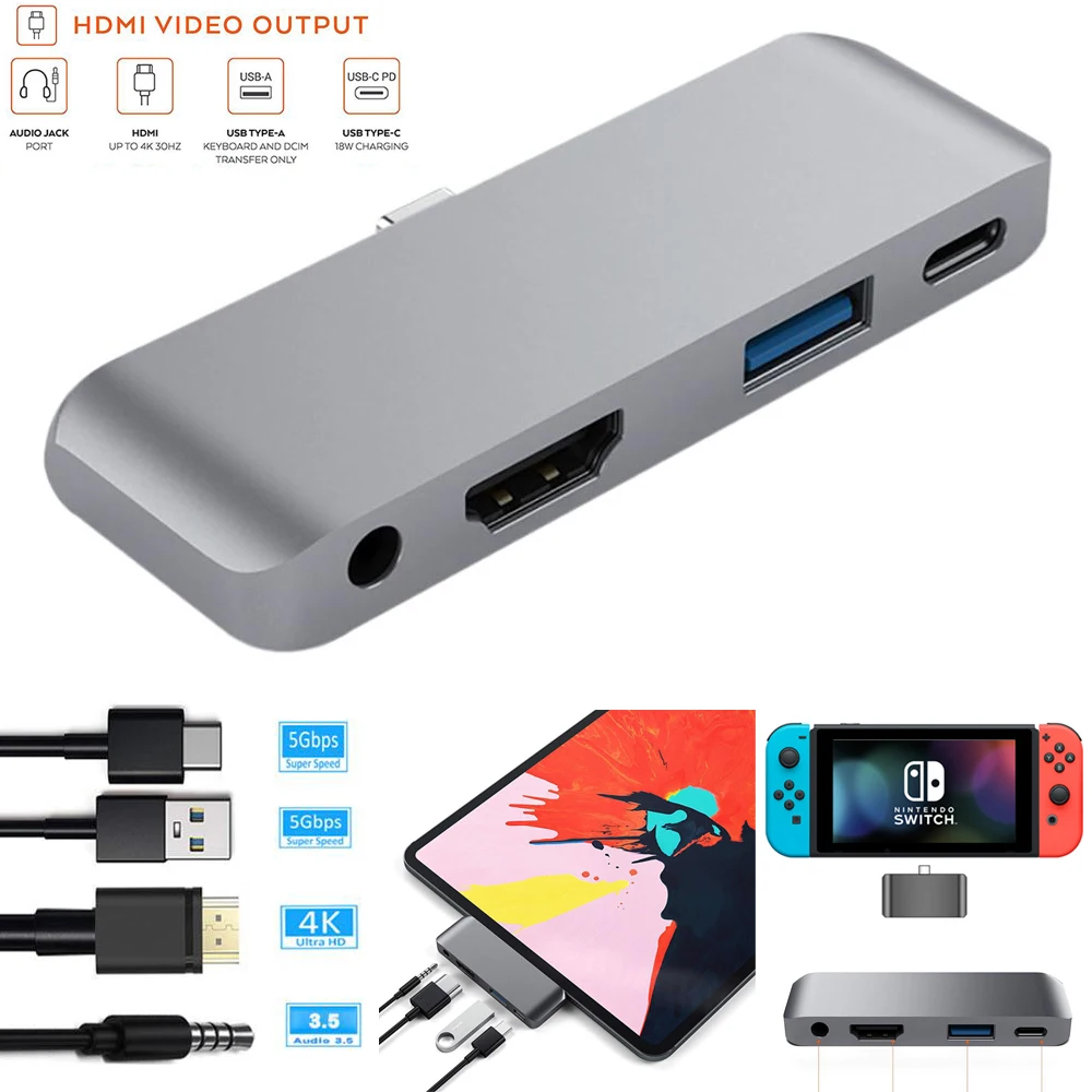 USB 3,1 Тип C PD быстрая Зарядное устройство 4K HDMI USB 3,0 3,5 мм разъем AUX кабель Адаптер Hub для iPad Pro Air4 PS4 переключатель Macbook XBOX