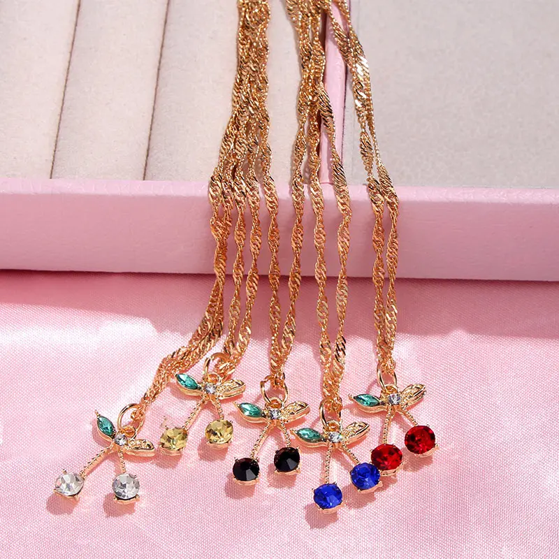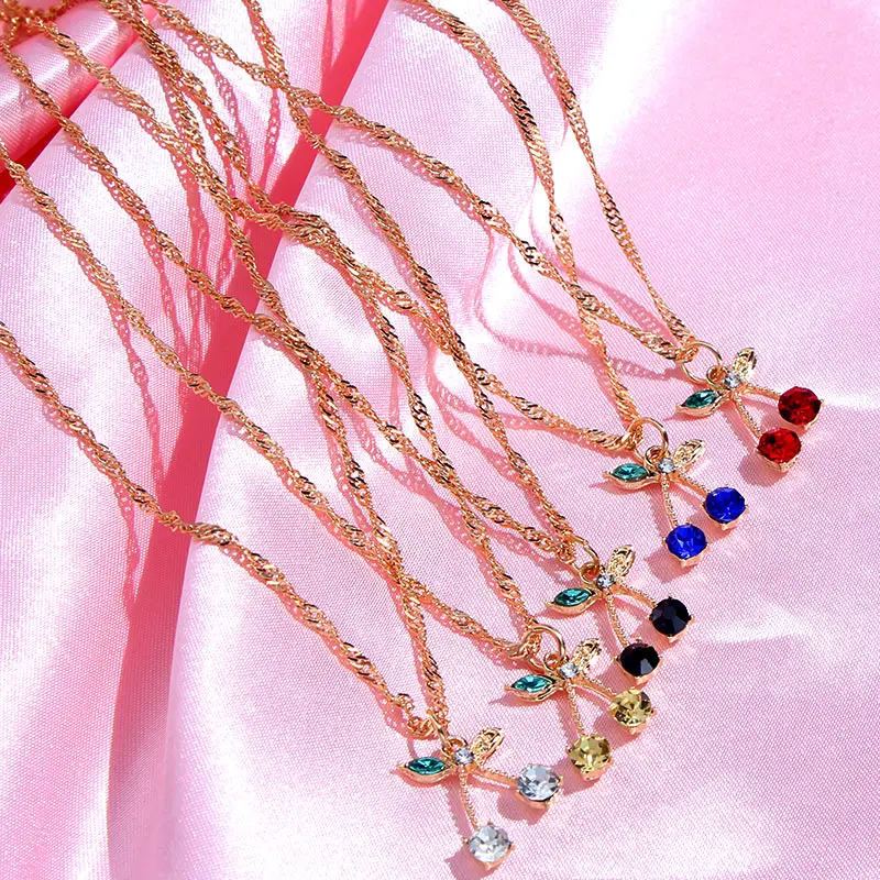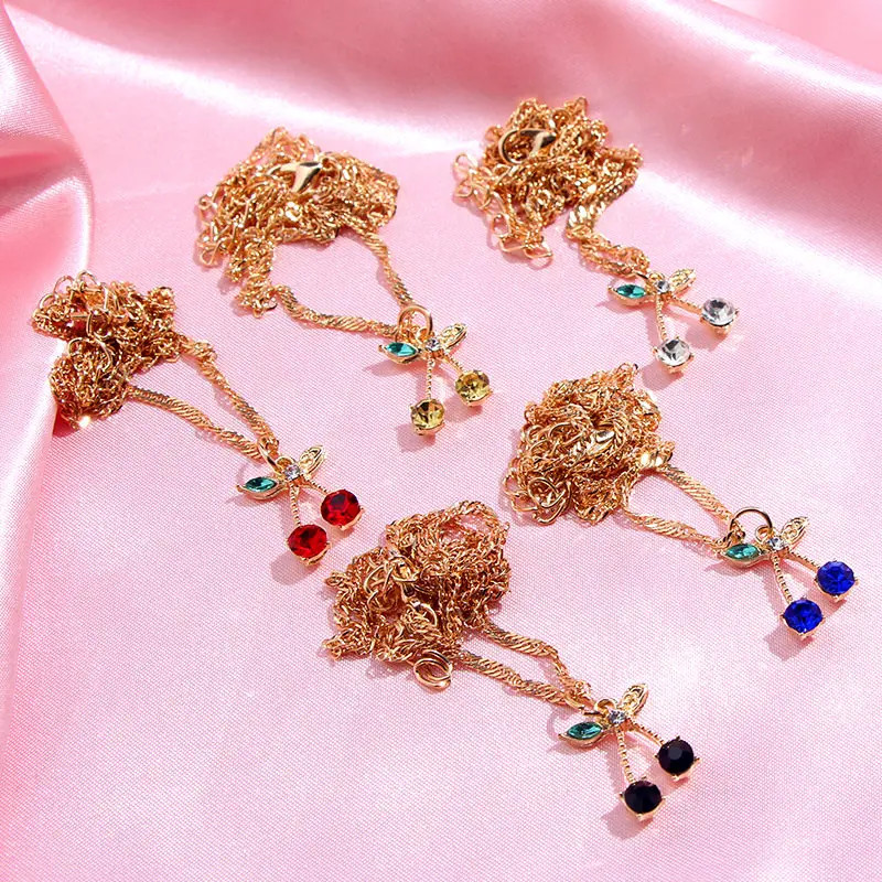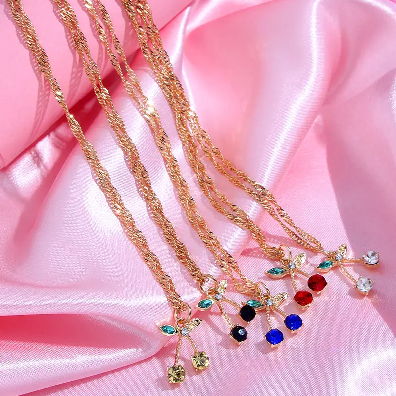Женское ожерелье с кулоном в виде вишни JUST FEEL, корейское колье золотистогосеребристого цвета, вечерние пляжные украшения