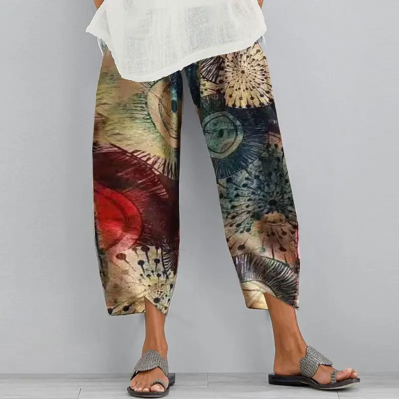 Брюки ZANZEA женские с эластичным поясом, хлопковые длинные укороченные штаны-султанки в винтажном стиле, в стиле оверсайз, с принтом, лето 2021