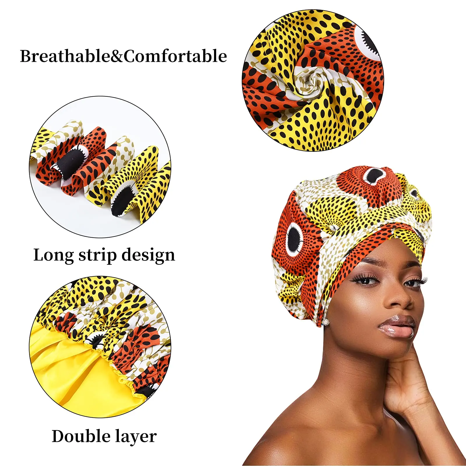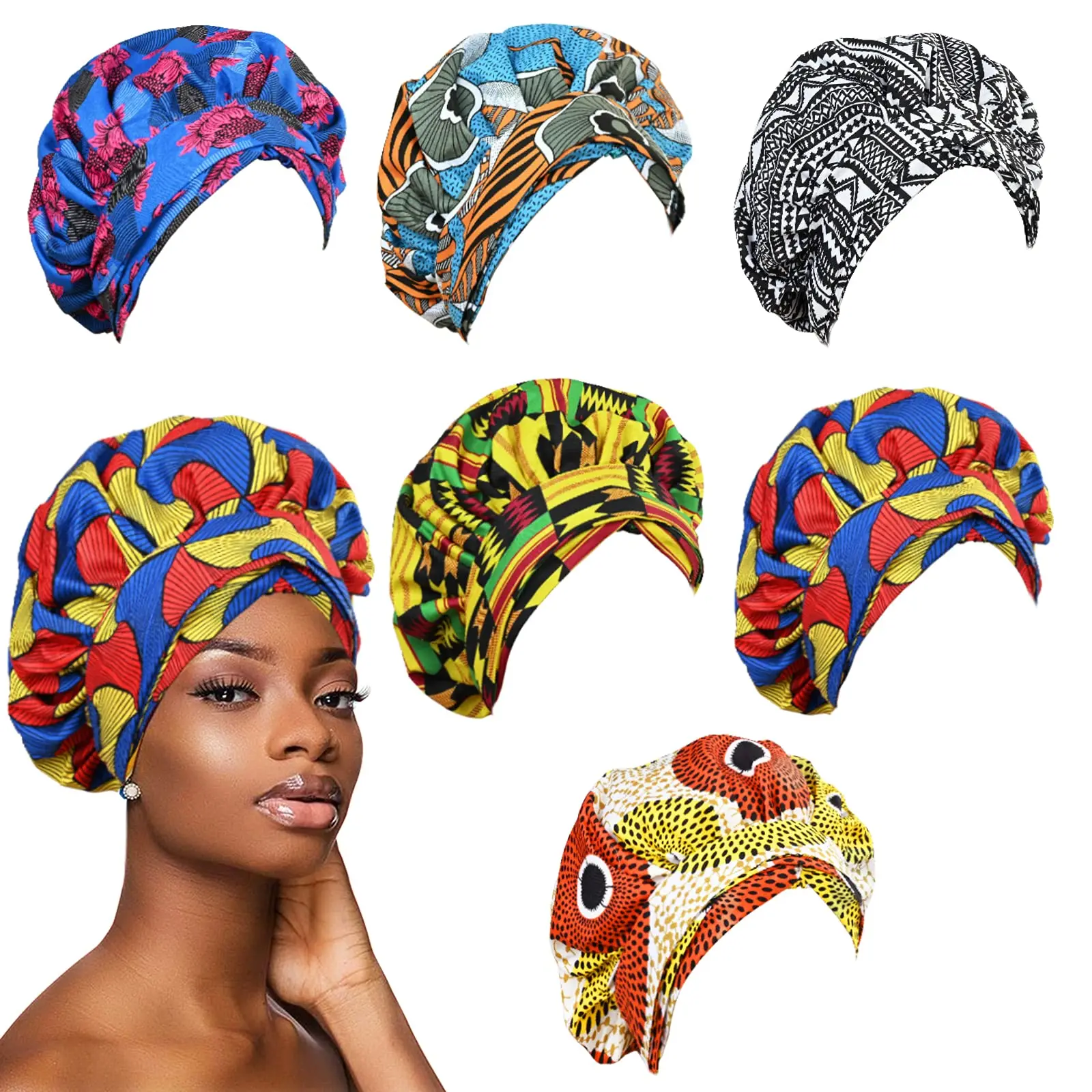 Атласный головной убор с двухслойным принтом, головной убор в африканском стиле, женская шелковая Кепка для сна, s эластичная лента, индийская головная повязка, тюрбан, шапка, хиджабы, Кепка