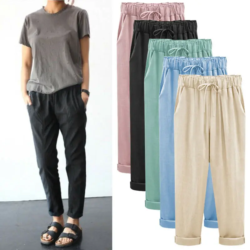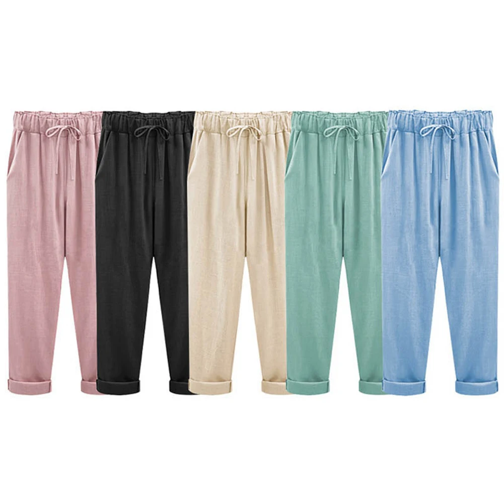 Размера плюс штаны L-5XL 6XL 7XL женские, винтажные хлопково-льняны...