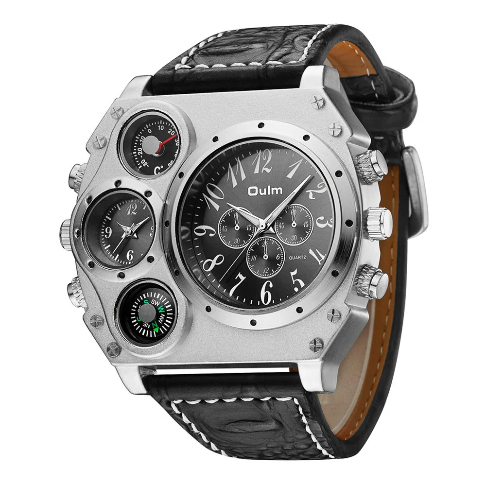 Роскошные брендовые часы Oulm, мужские часы с двойным кварцевым механизмом, мужские спортивные военные часы с компасом, мужские часы