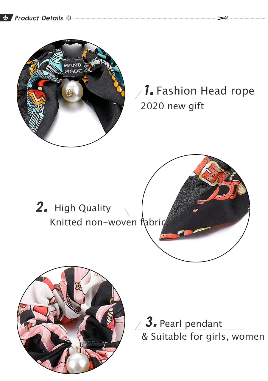 Flower Printed Bows Hair TiePonytail Holder Hair Scrunchies