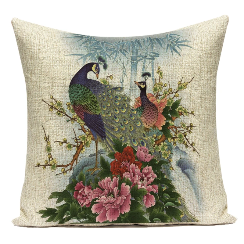 Декоративные подушки из полиэстера, чехол для дивана и подушки с милыми животными и павлином, открывающийся цветок