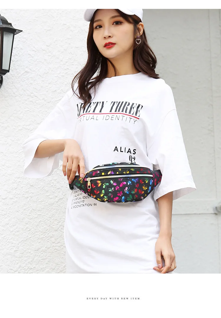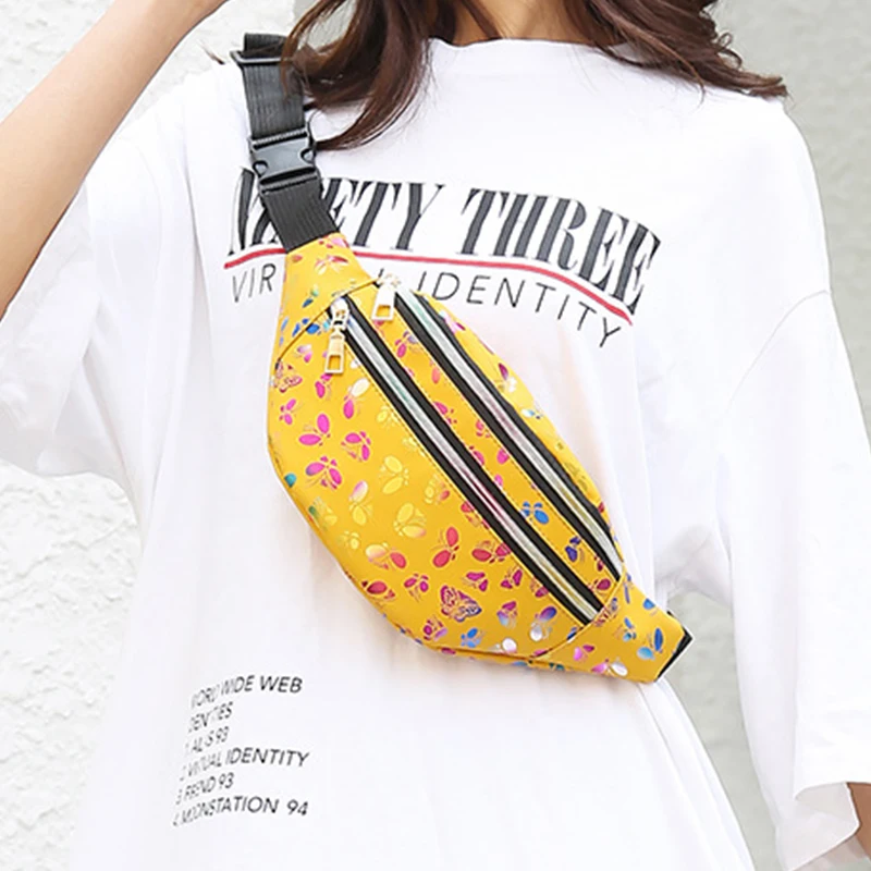 Поясная голографическая сумка для девочек-подростков, забавные Женские поясные сумки с геометрическим узором, нагрудная Сумочка для телефона с лазерной печатью