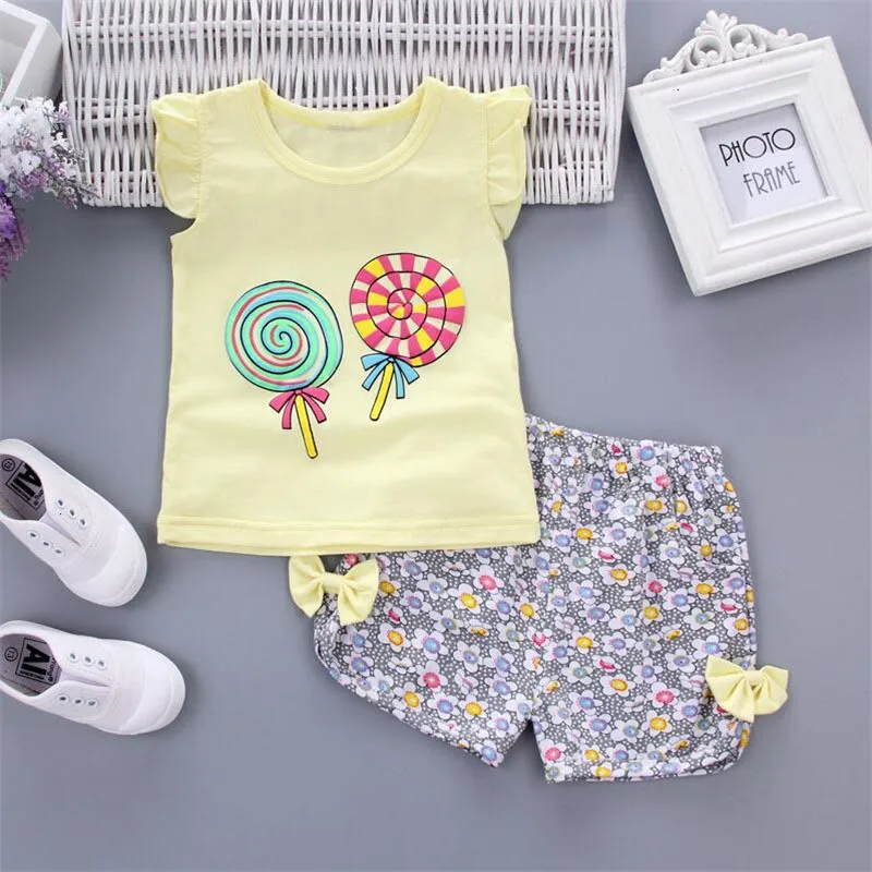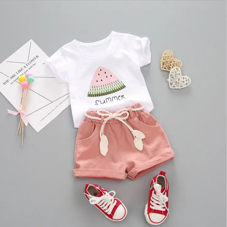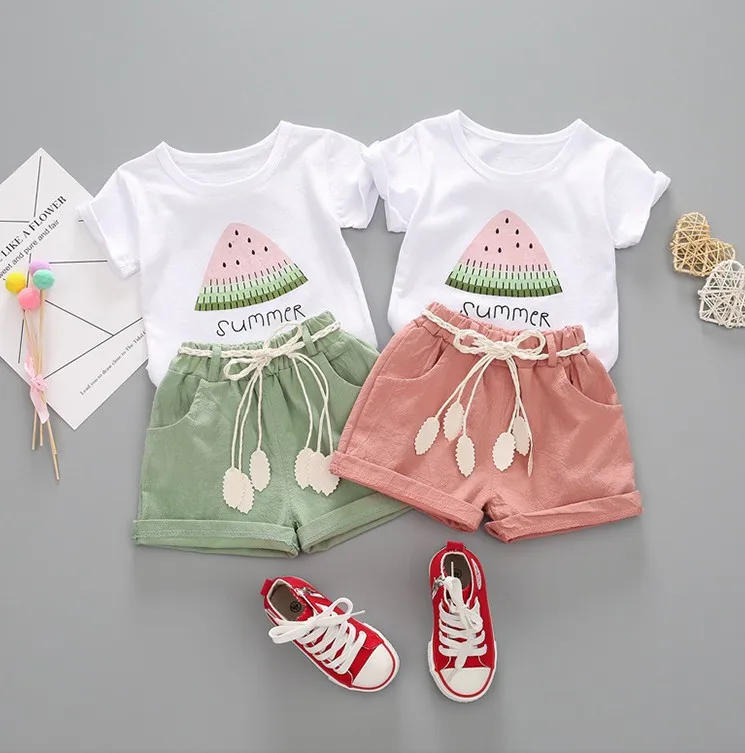 Комплекты одежды для маленьких девочек, летние модные футболки + шорты для малышей, хлопковые спортивные костюмы для маленьких девочек, новинка 2020