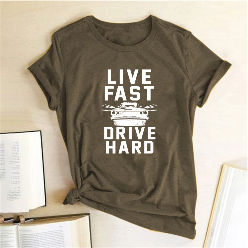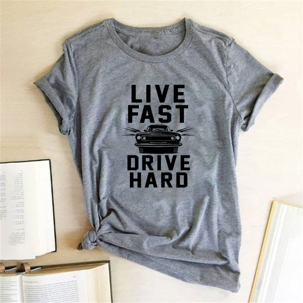 Женская футболка с коротким рукавом Live Fast Drive, Повседневная летняя футболка 90s, эстетическая одежда, Женская футболка 2020