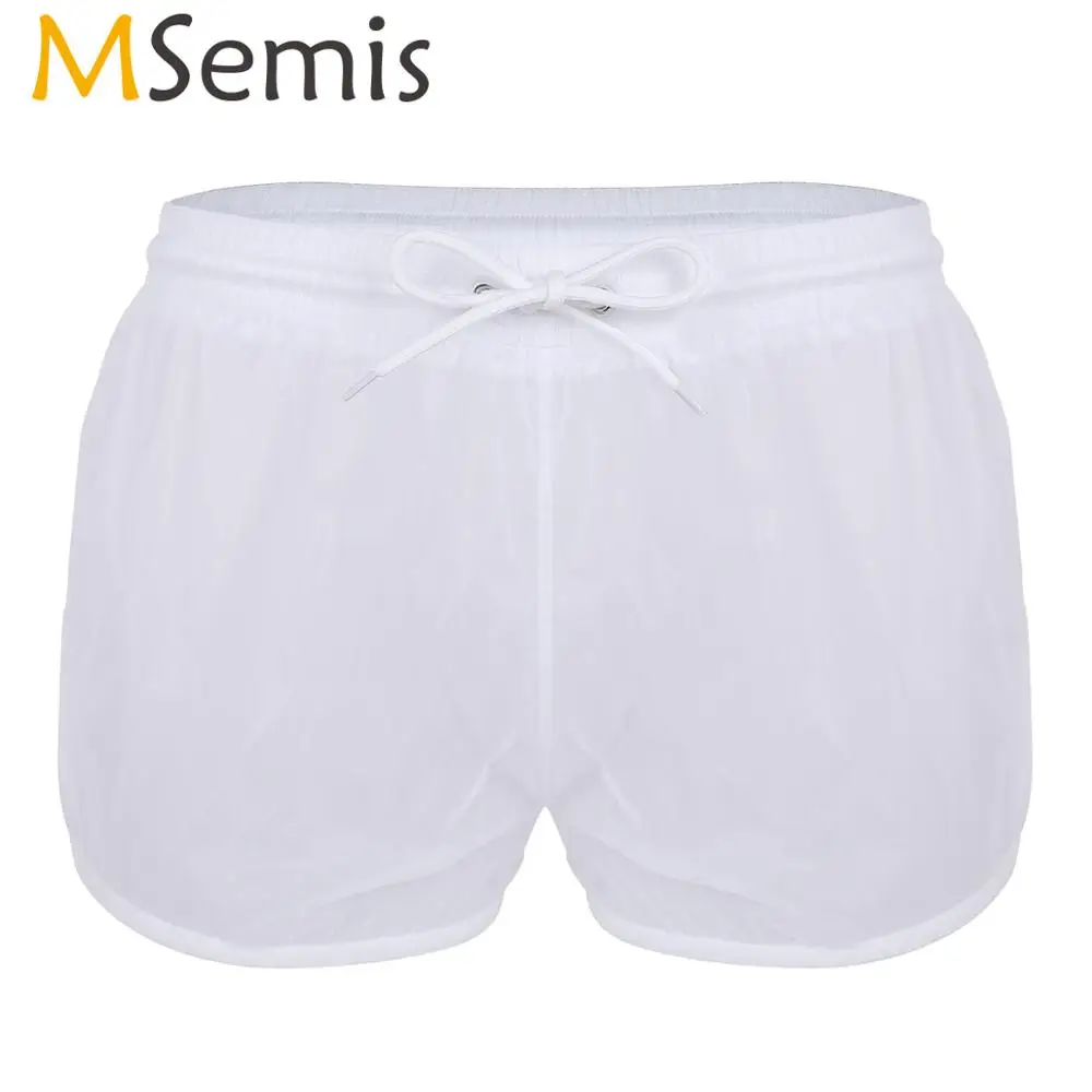 Мужские Сексуальные Прозрачные шорты MSemis, мужские брифы на шнуровке, повседневные свободные трусы, одежда для вечевечерние НКИ и клуба