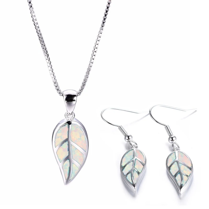 Ожерелье с подвескойсерьги-подвески с голубыми листьями и имитацией огненного опала